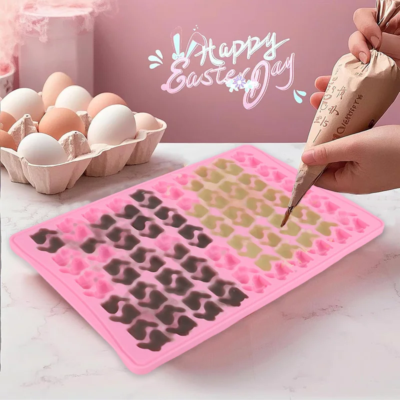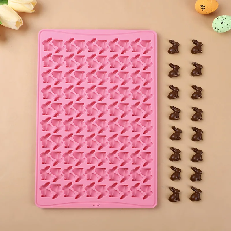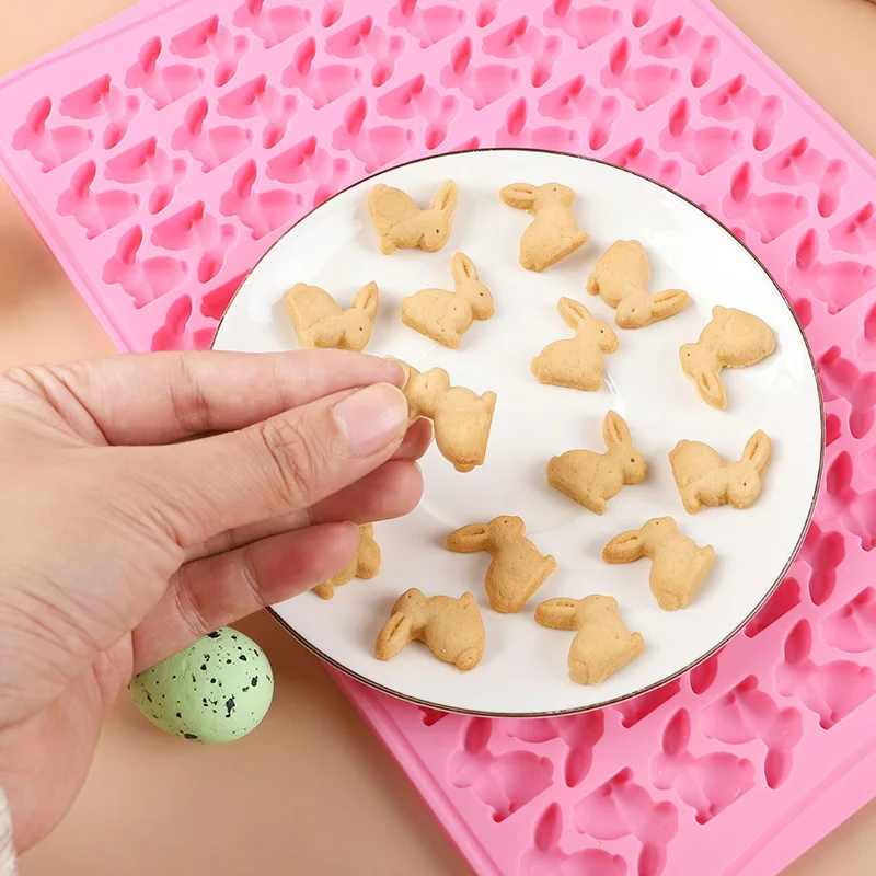 1pc 100 Grid 3D Rabbit Cookie Mold Easter Bunny Silicone Molds for Chocolate Biscuit Baking Tools Easter Party Cake Decoration