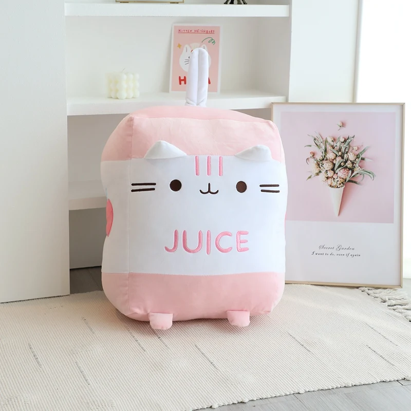 Soft plush fabric and PP-cotton filling create a cute cartoon cat milk-bottle plushie designed for comfort, decoration, and playful cozy style. The unique backside kitten-tail and drink-bottle shape make it a fun accent cushion for sofas, beds, reading corners, or kawaii-style room decor.