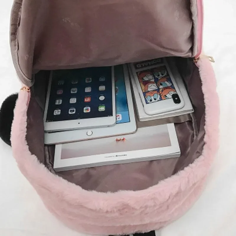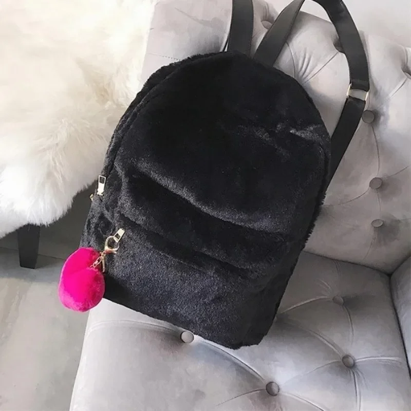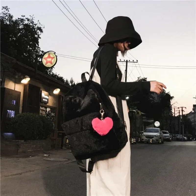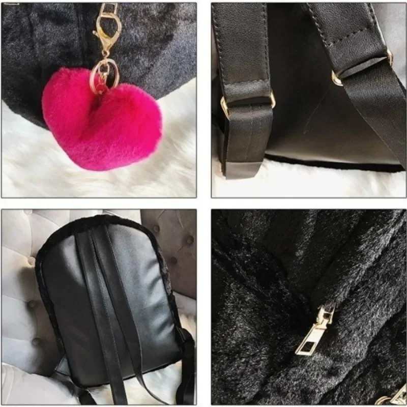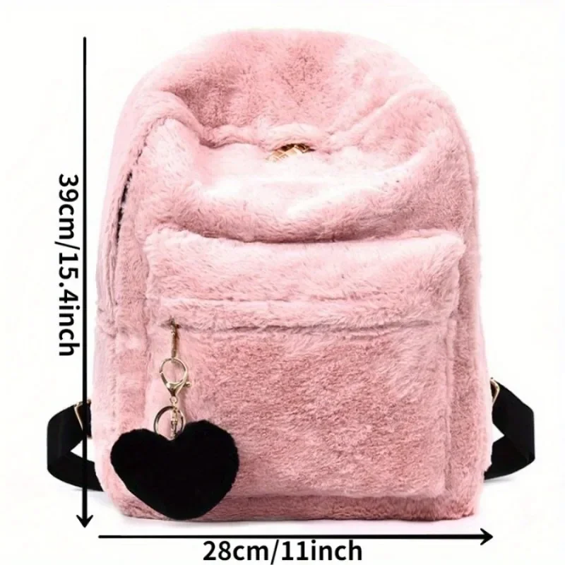 1PC Cute Women's Plush Faux Fur Backpack Heart Pendant Soft Backpack Mini Backpack