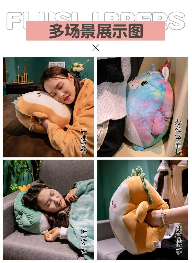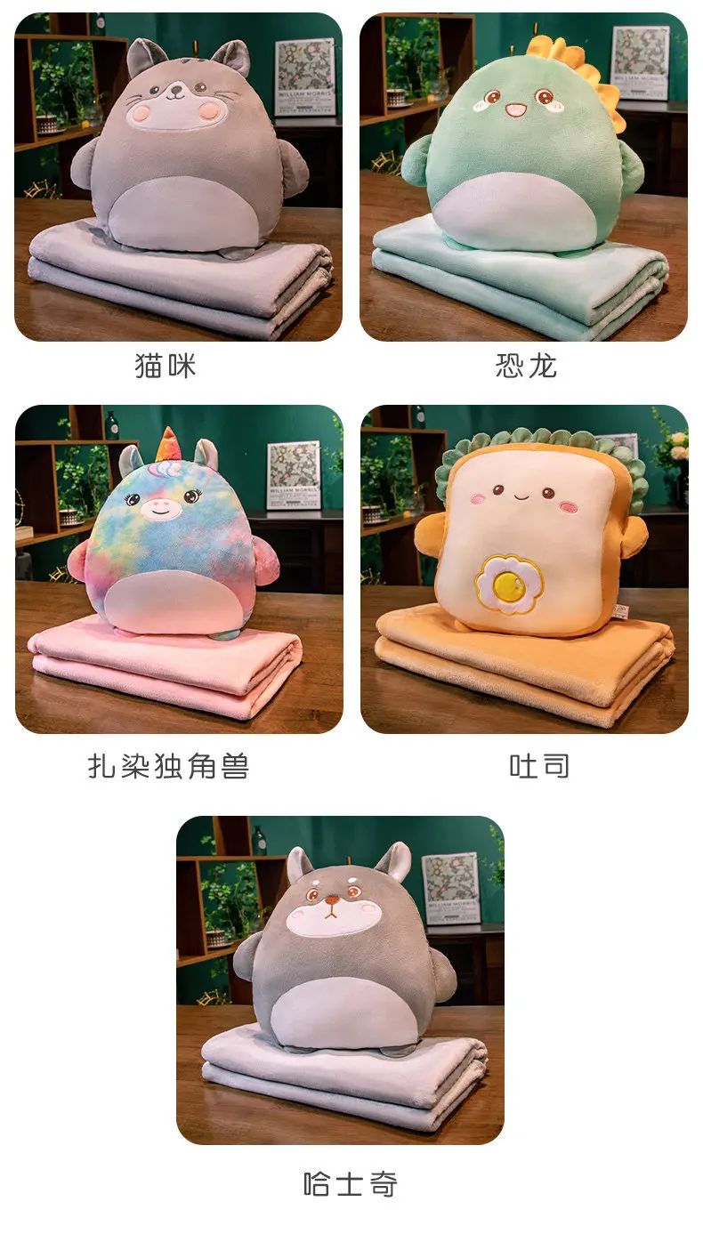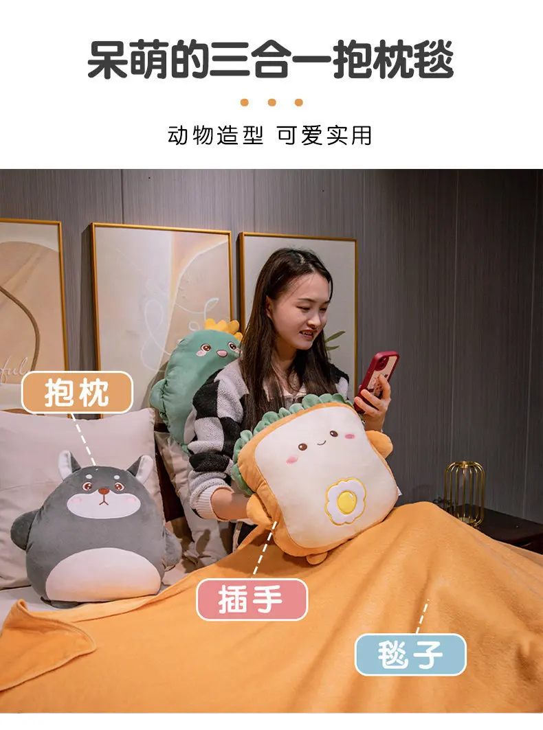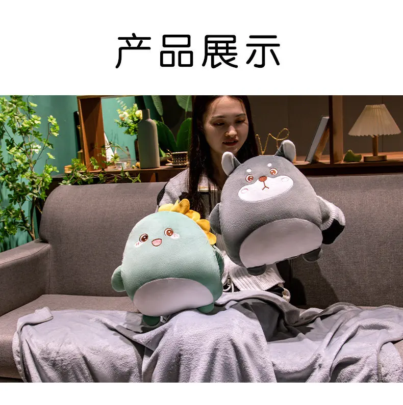 2-in-1 Plush Pillow Flange Plush Blanket Cartoon Warm Hand Doll Office Nap Leg Cover Soft Comfortable Storage Design Cushion
