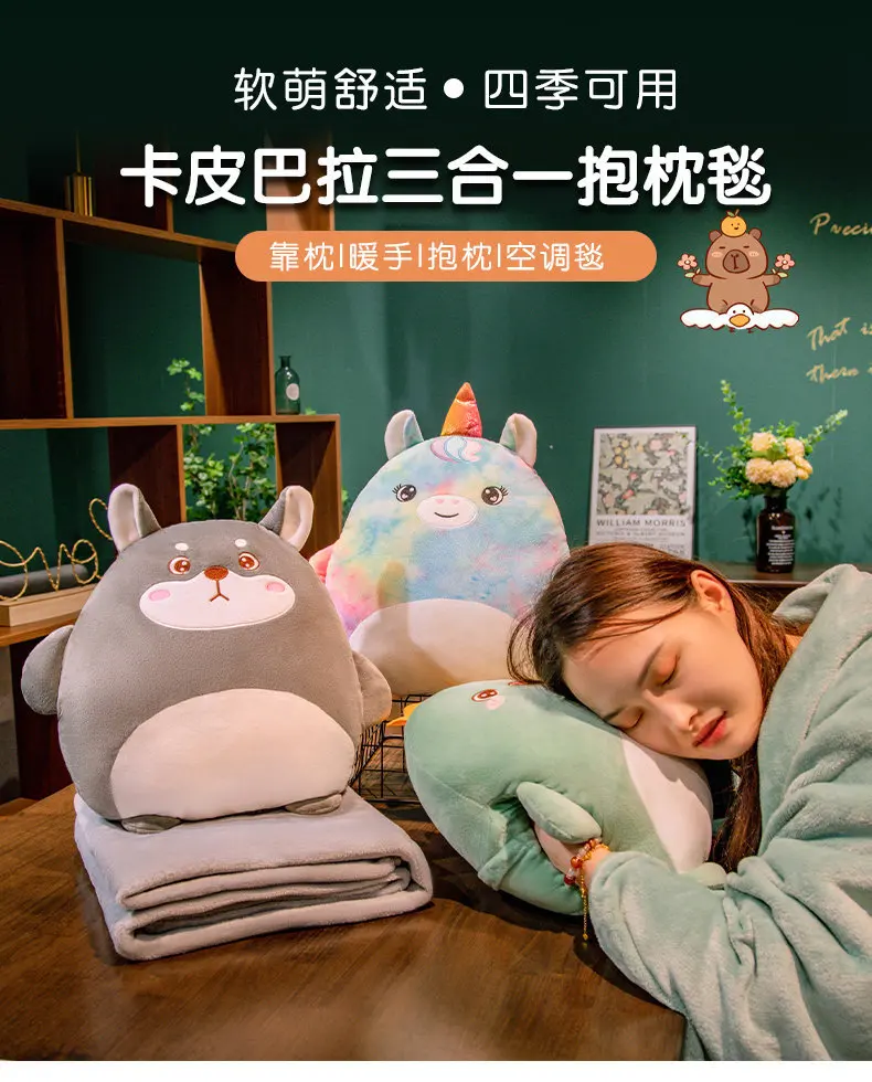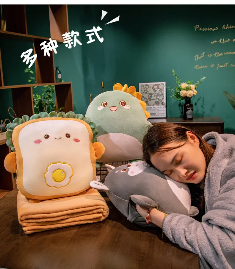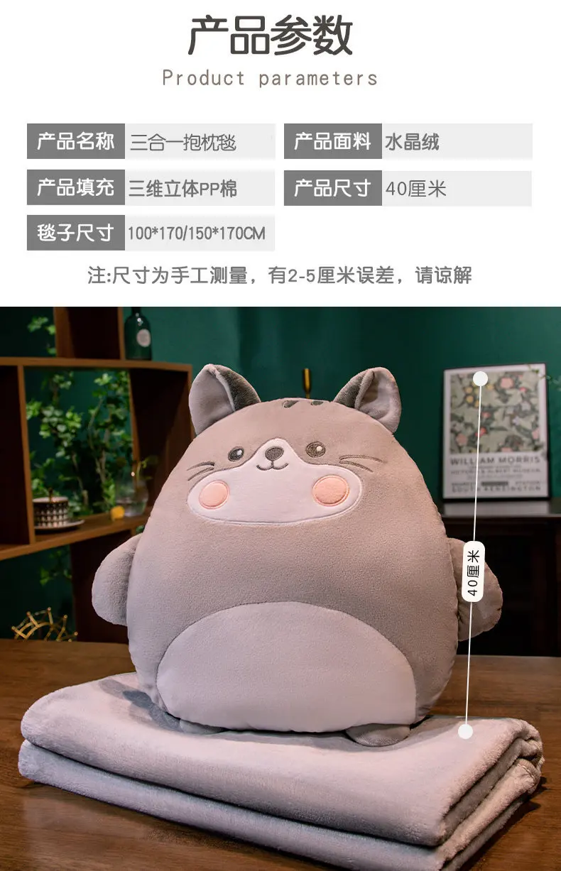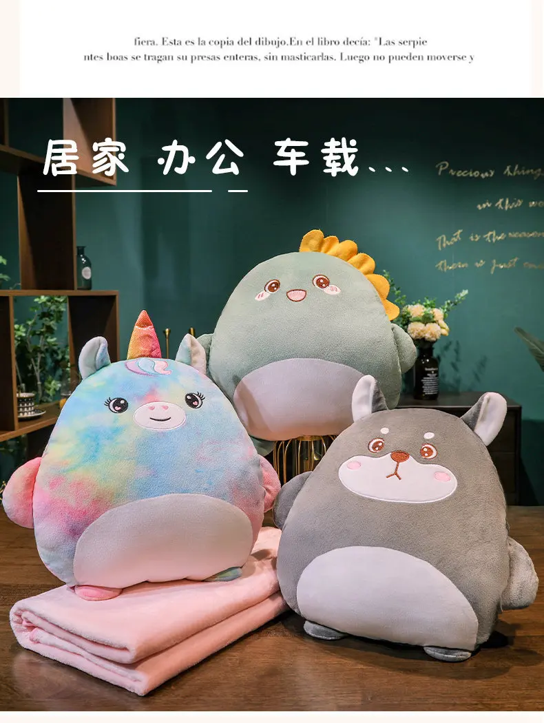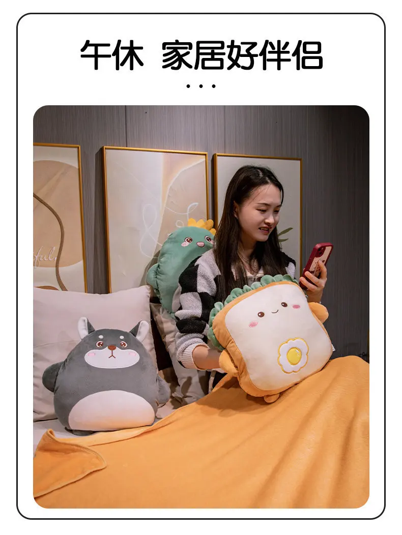 2-in-1 Plush Pillow Flange Plush Blanket Cartoon Warm Hand Doll Office Nap Leg Cover Soft Comfortable Storage Design Cushion