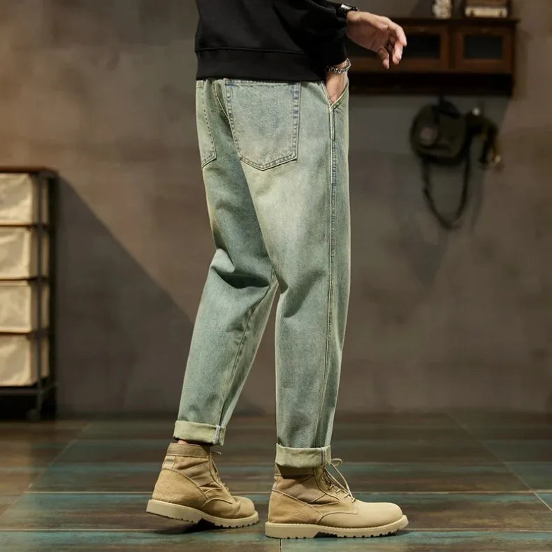 2026 Loose Retro Harem Jeans — Minimalist Solid Color Men’s Casual Pants, Comfortable Mid-Waist Relaxed Fit for Daily Wear
