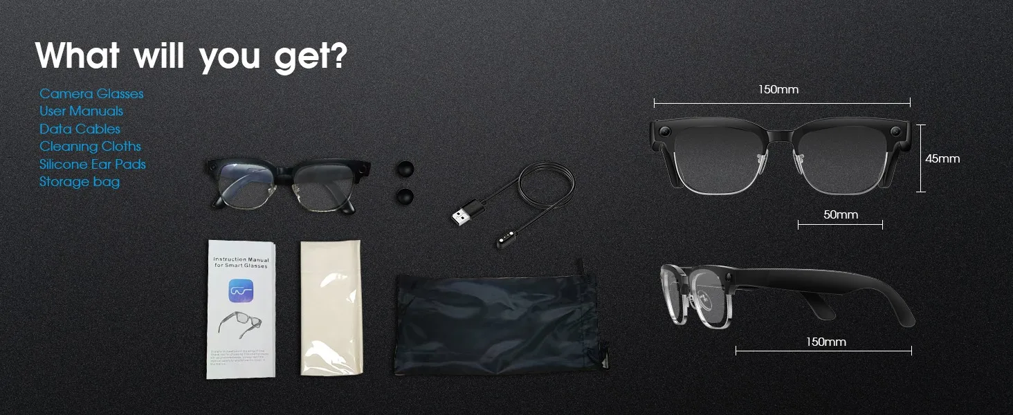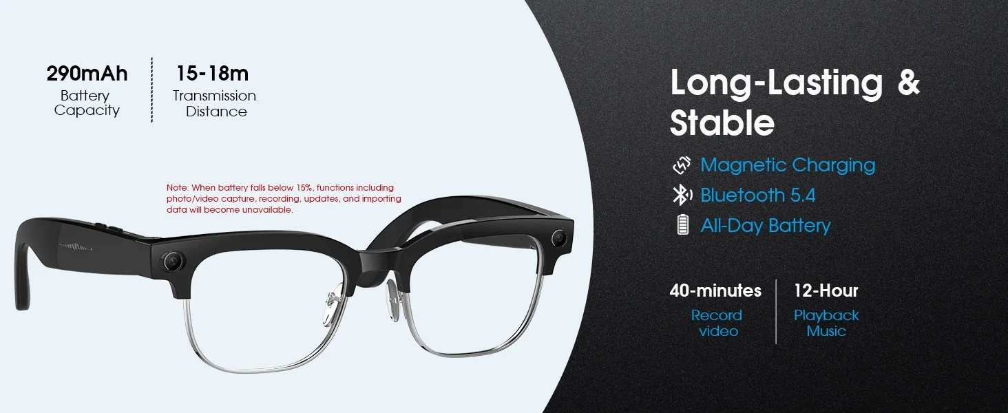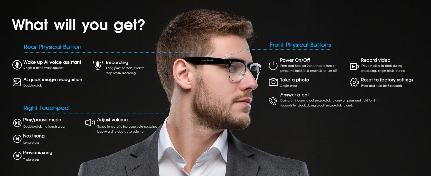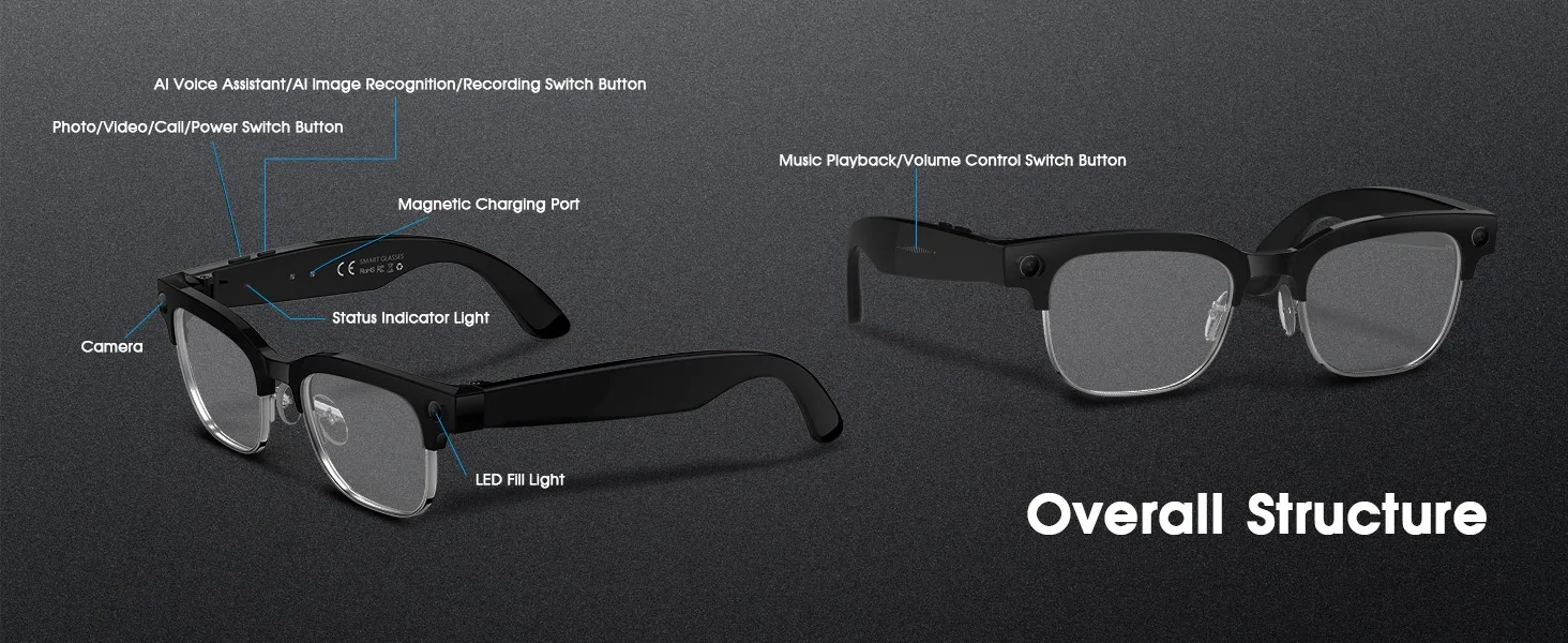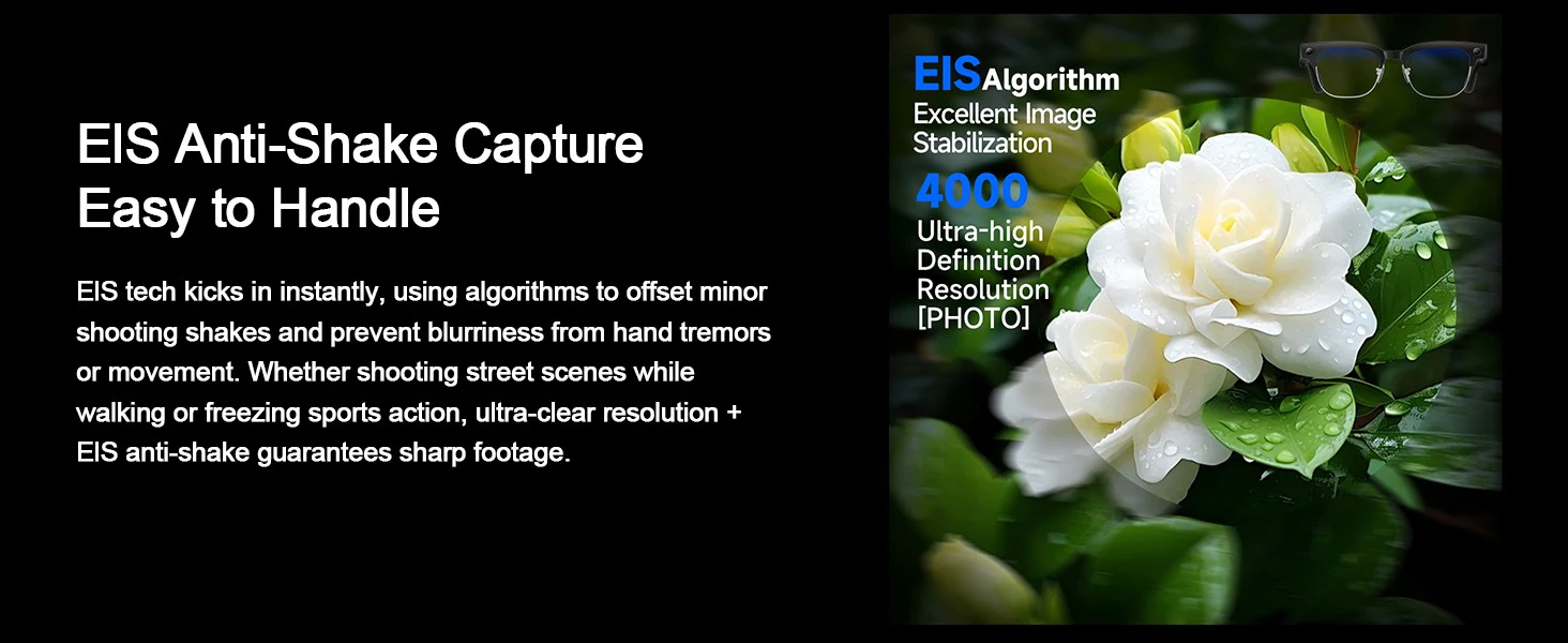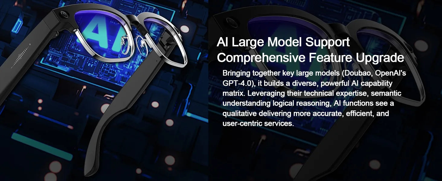 2026 Smart Glasses with 800W Ultra-Wide HD 4K Camera — Dual Lens Video Recording, 4GB AI Photo Recognition, Bluetooth Calls, Voice Translation, Anti-Blue Light UV Sunglasses