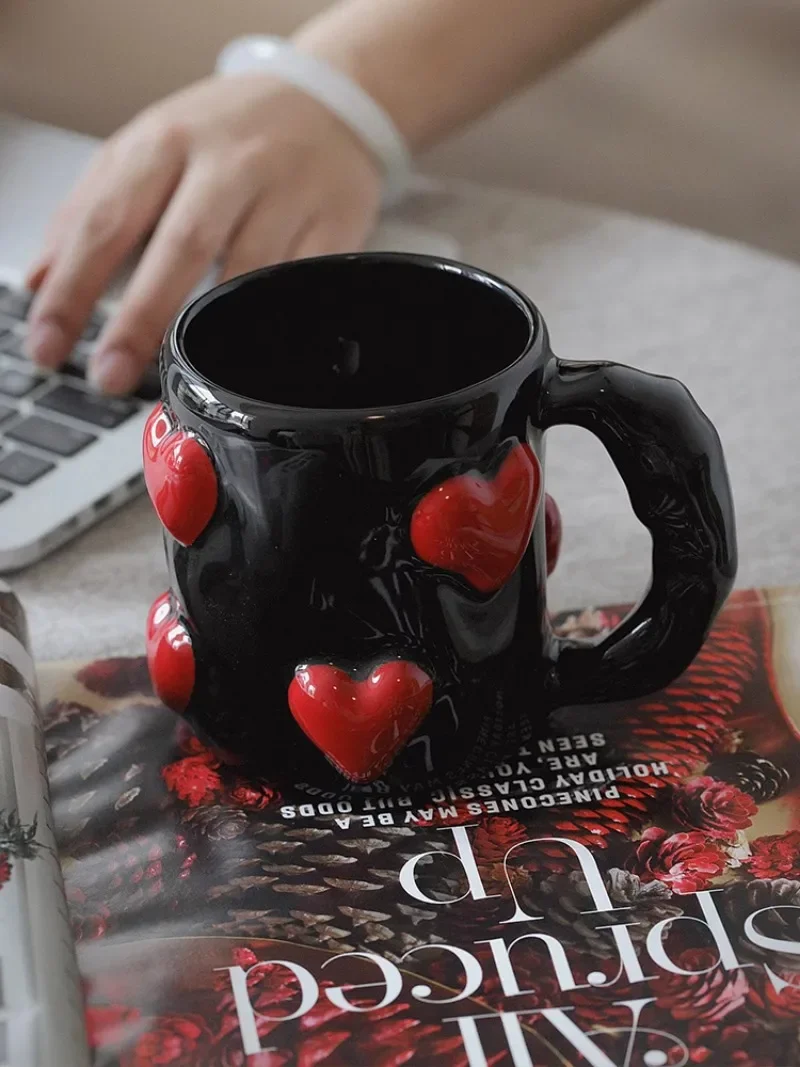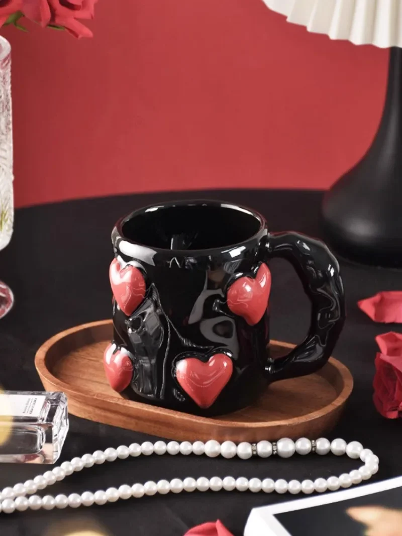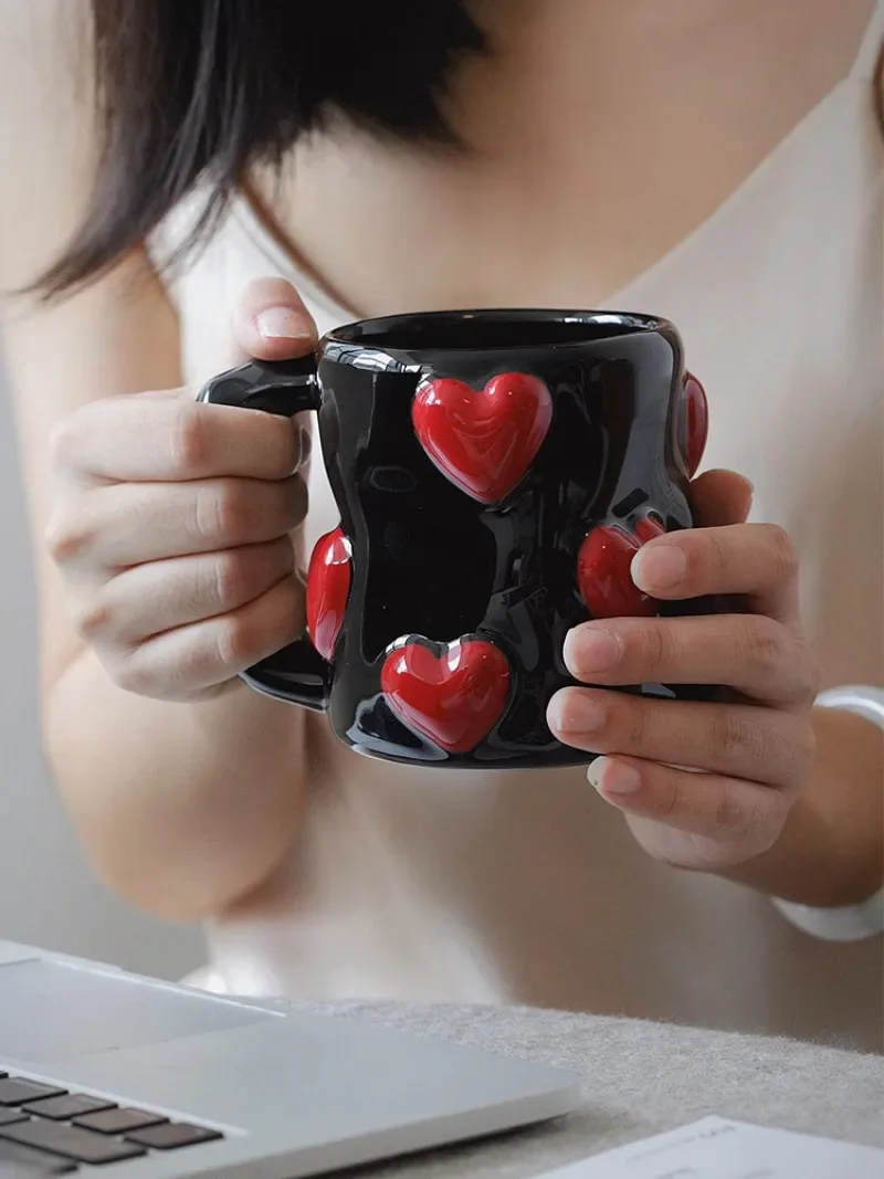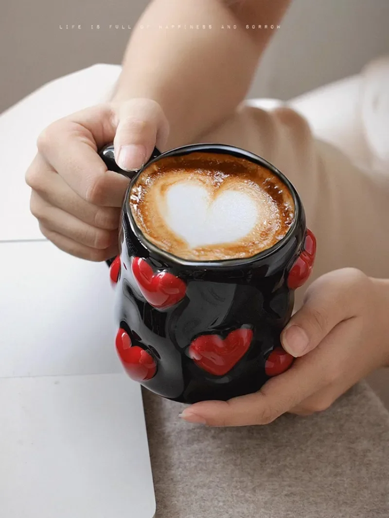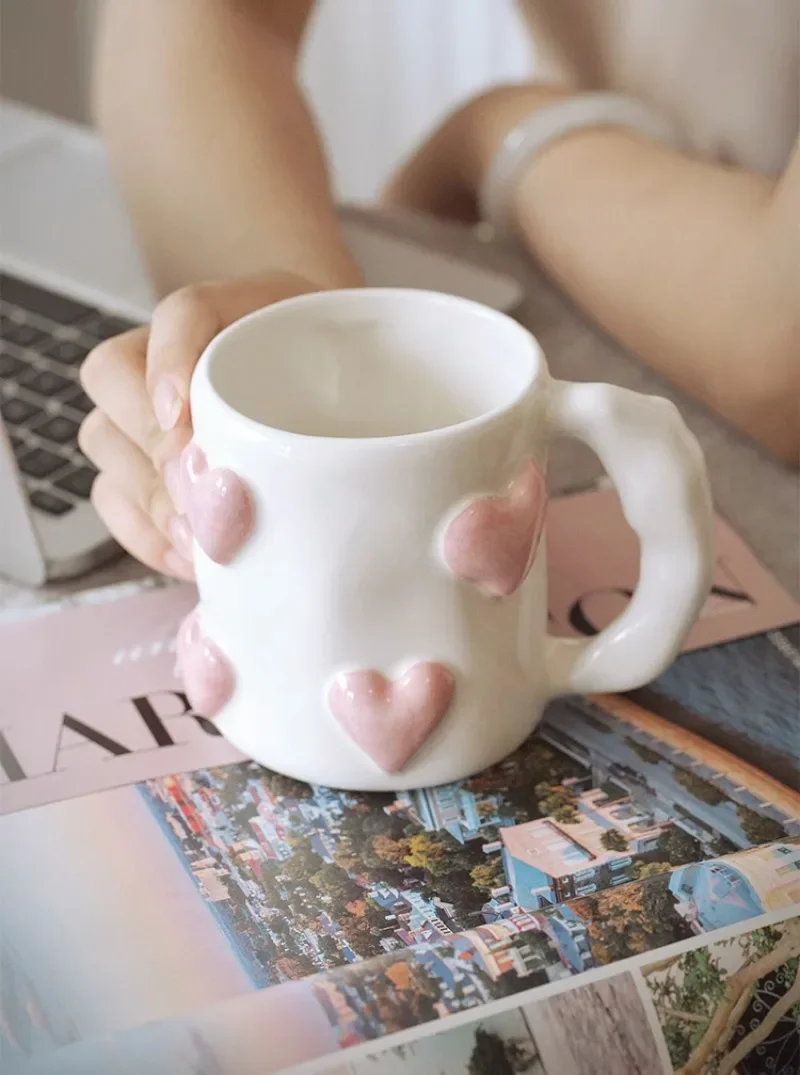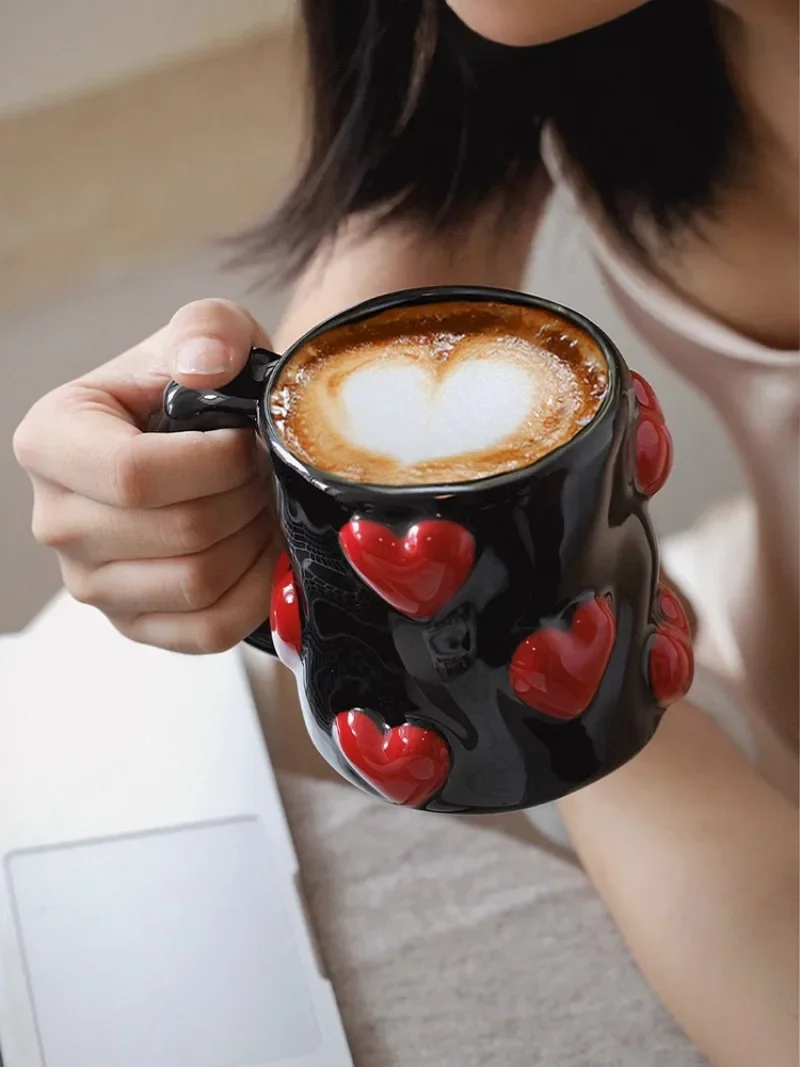 3D Heart-shaped Design Vintage Ceramic Mug, Cute Large Capacity, 3D Embossed Coffee Cup, Kitchen Drinkware Set