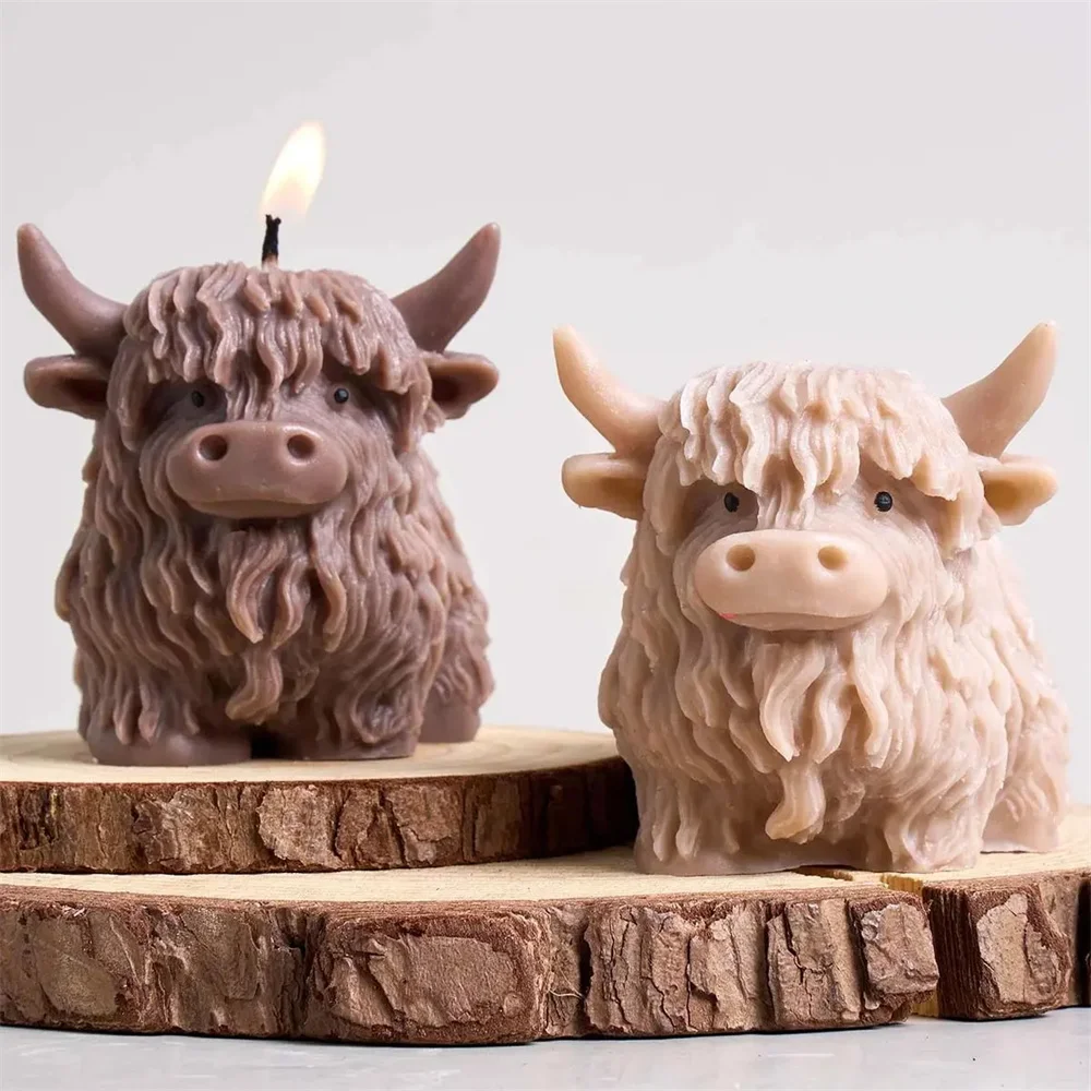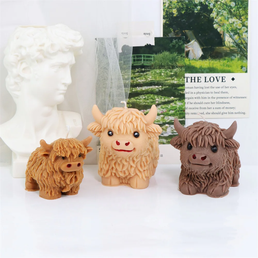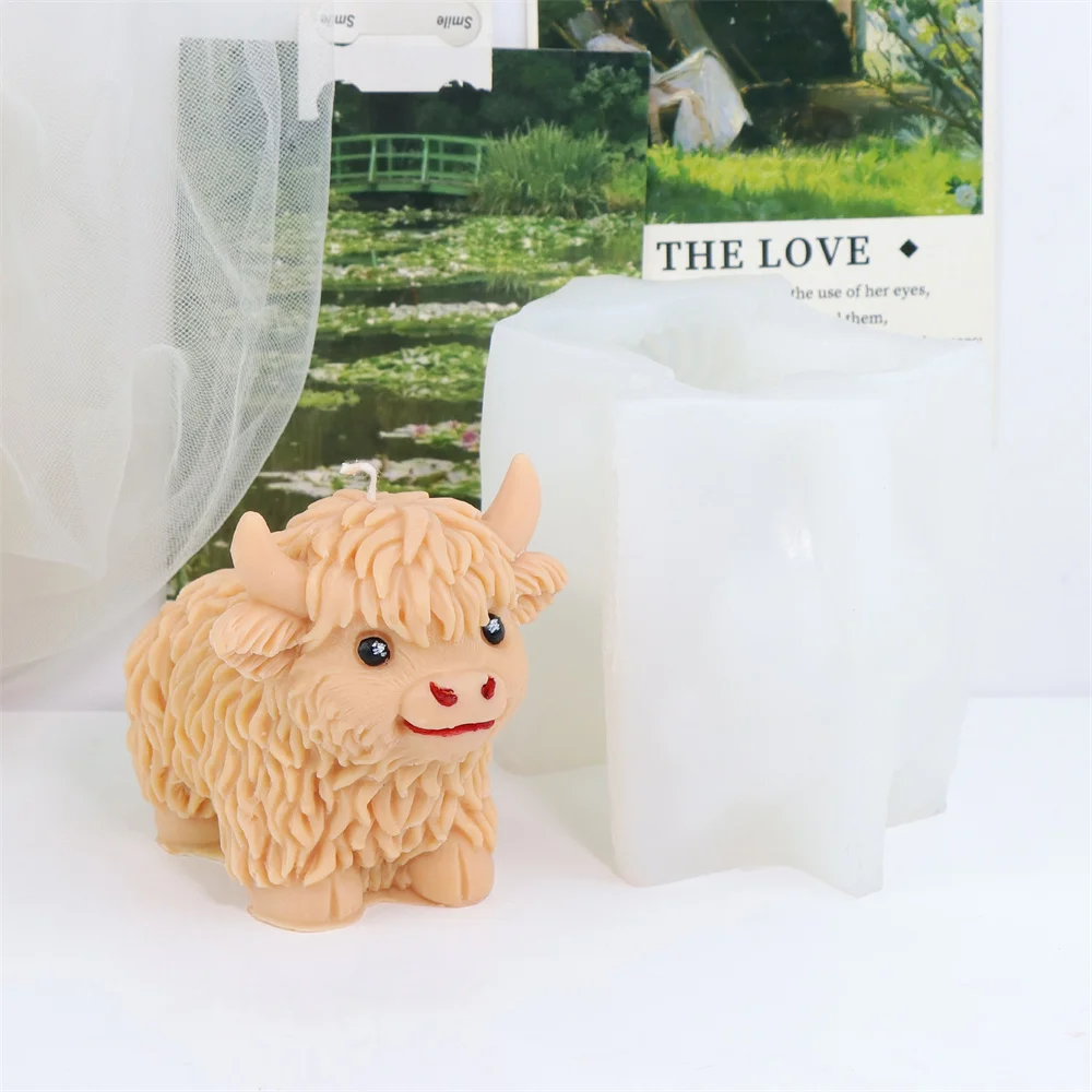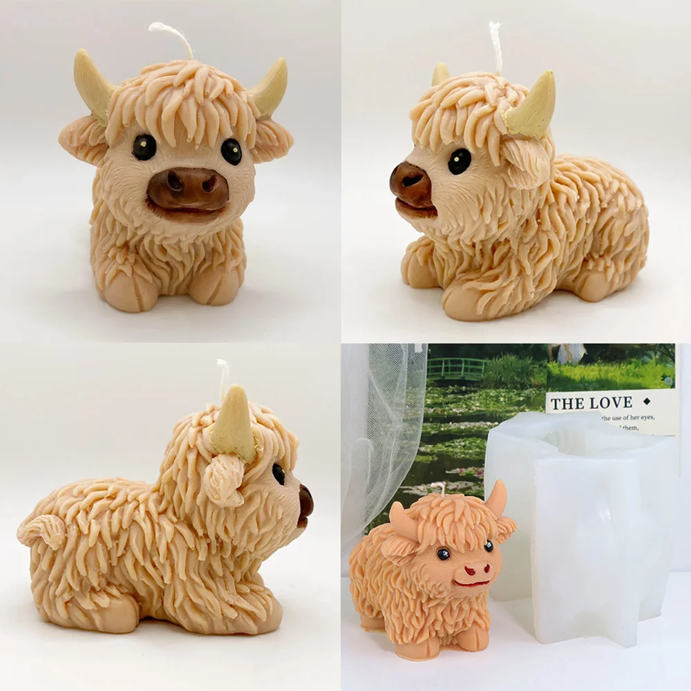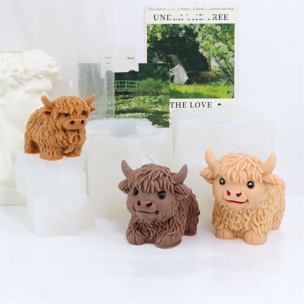 3D Highland Cow Silicone Mold Highland Yak Candle Mold Cute Animal Cattle Resin Concrete Cement Statue Art Mold Home Decor Tool