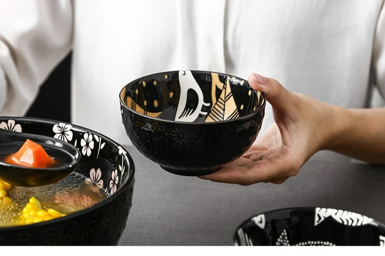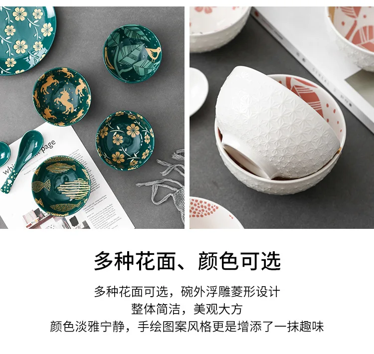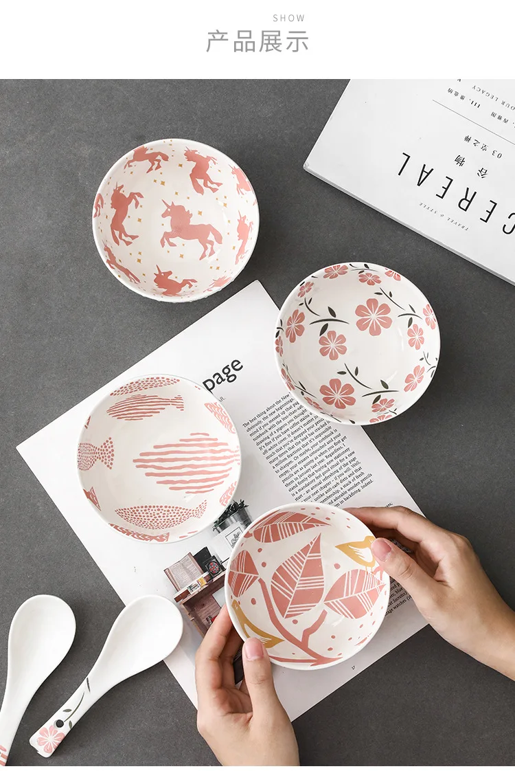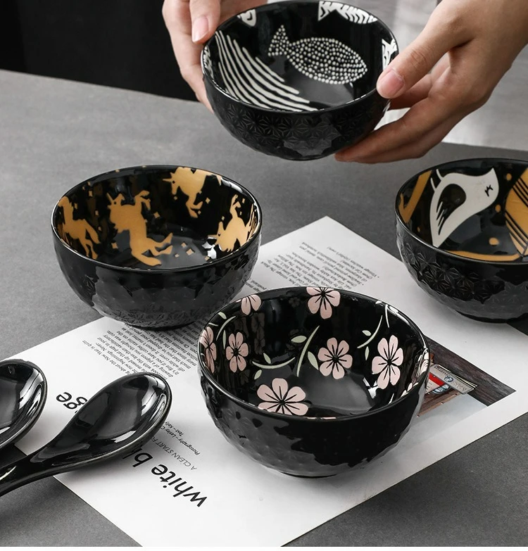 4.5inch Japanese Salad Bowl Household Creative Ramen Ceramic Bowl Tableware Home Restaurant Household Dessert Rice Bowl
