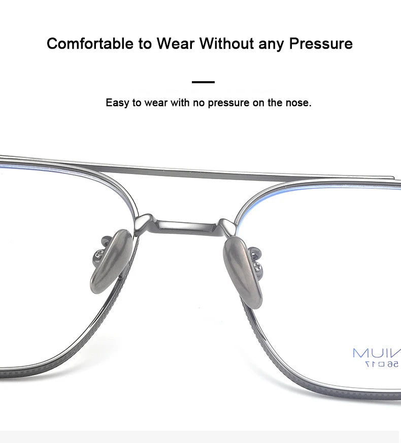 Experience the perfect combination of style and functionality with our Ultralight Double Bridge Pilot Eyeglasses. Crafted with pure titanium, these glasses offer unmatched comfort without compromising on durability. Elevate your eyewear collection with a pair designed for both casual and sophisticated occasions!