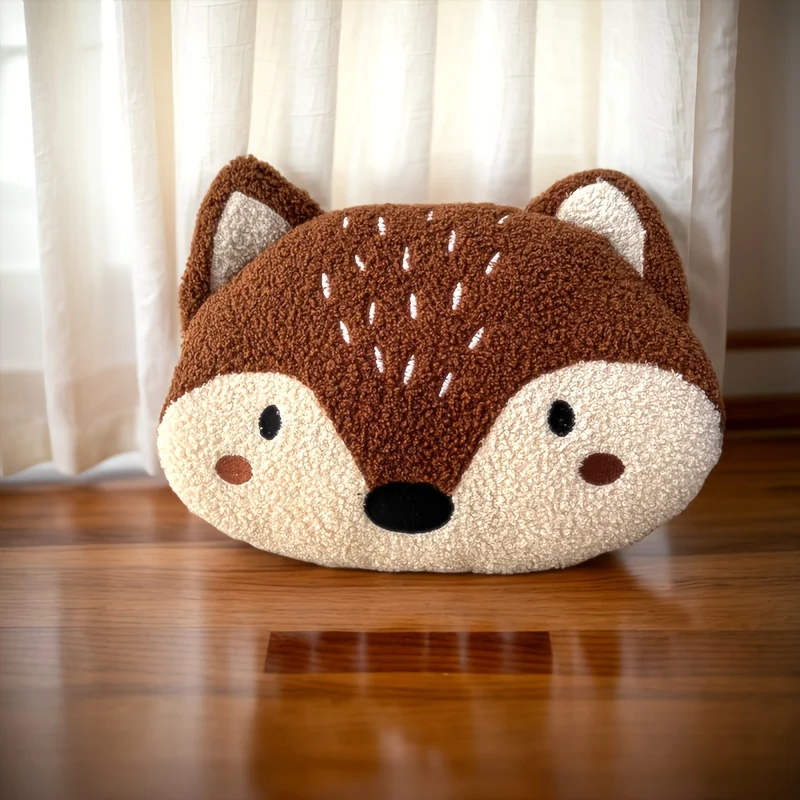 A cute and cozy animal-themed throw pillow designed to add comfort and warmth to your living space. The round cushion features a soft 100% cotton fabric surface and a plump cotton filling that provides a comfortable, supportive, and huggable feel, making it ideal for relaxing on the sofa, bed, or lounge area.