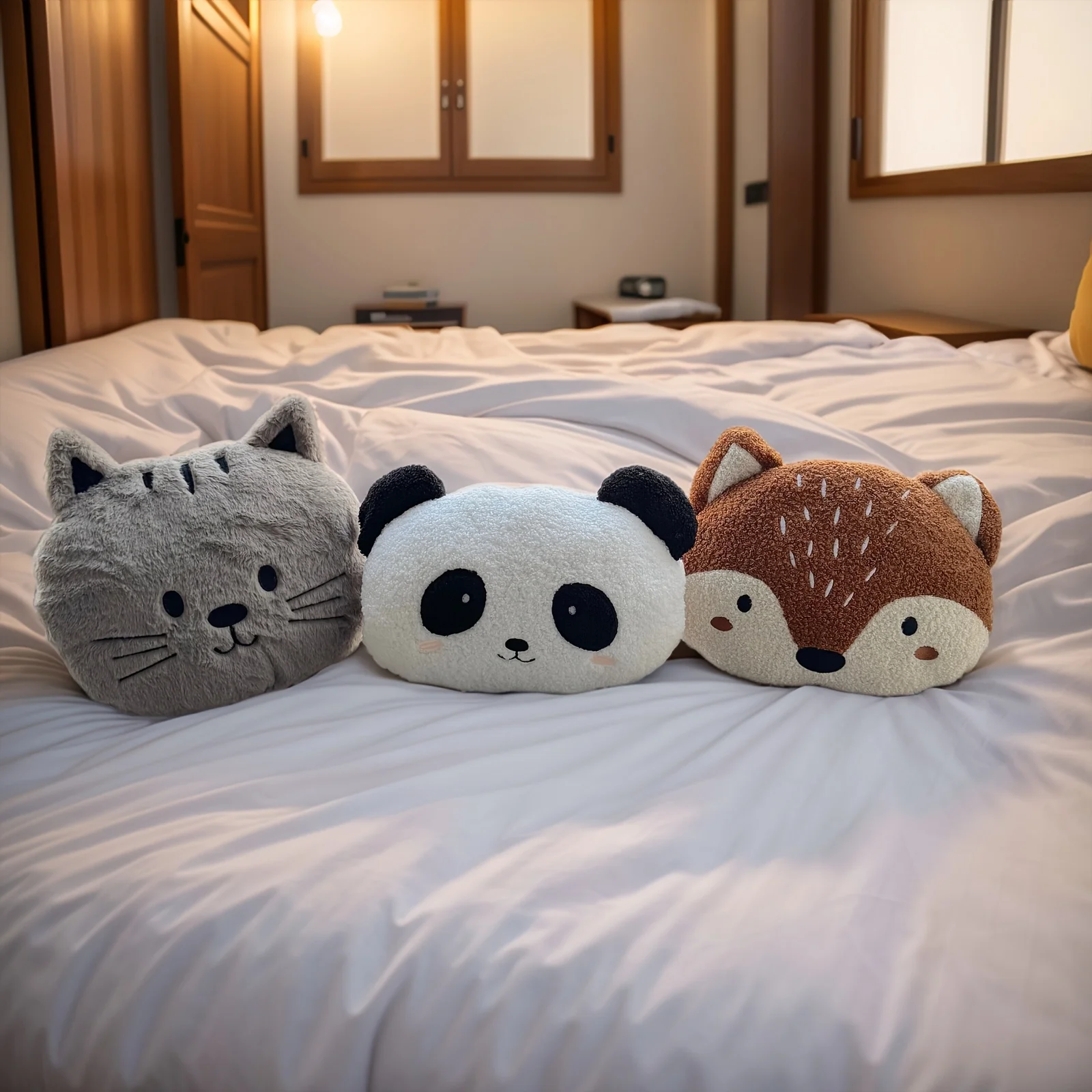 Adorable Animal Throw Pillow — Soft Round Plush Cushion with Plump Cotton Filling for Sofa, Bed, and Cozy Home Décor