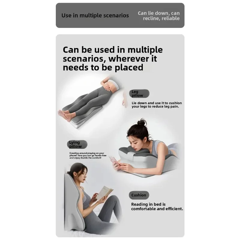 This multifunctional cushion can be used as a prone sleeping pillow, bed backrest, or relaxation support for resting, napping, or reading in bed.