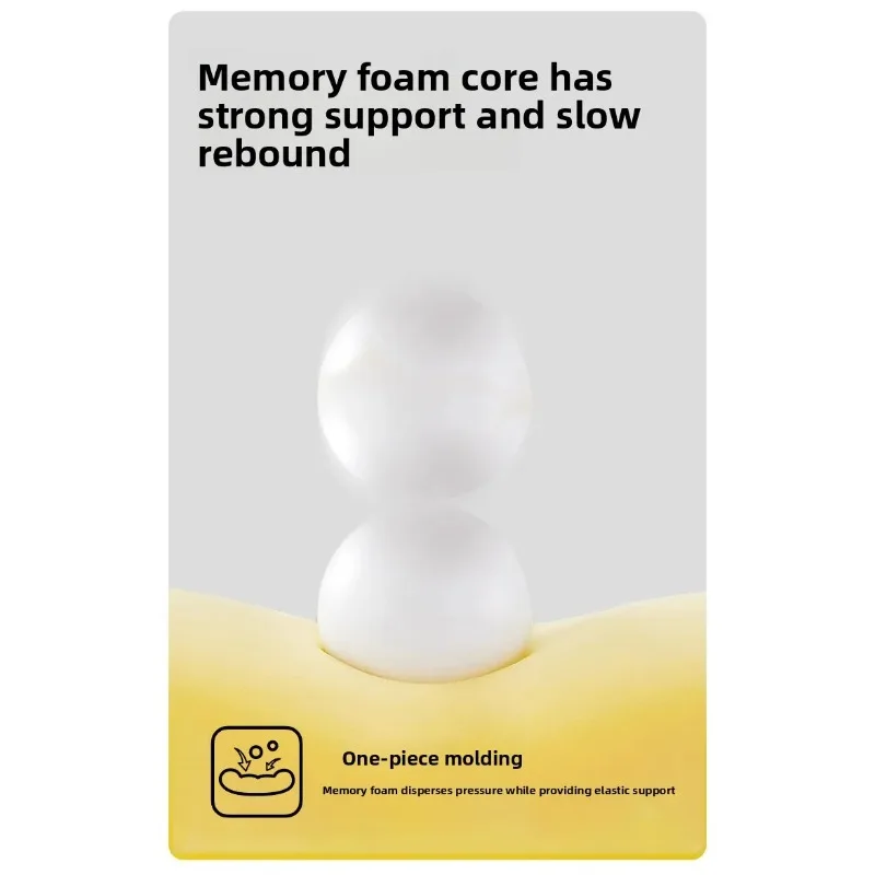 The memory foam filling adapts to body contours and distributes pressure evenly, offering a soft yet supportive feel for long-term comfort. The outer fabric is a polyester and cotton blend, suitable for daily bedroom use as a bed pillow, backrest cushion, or neck-care support pillow.