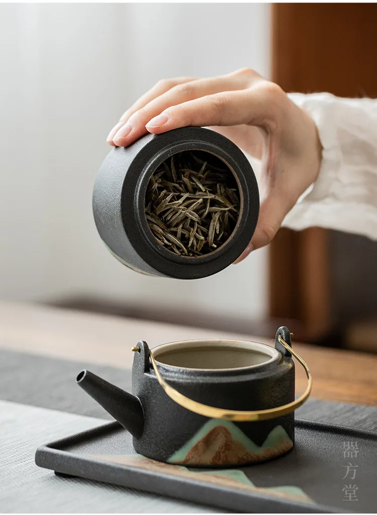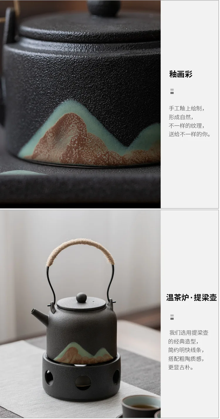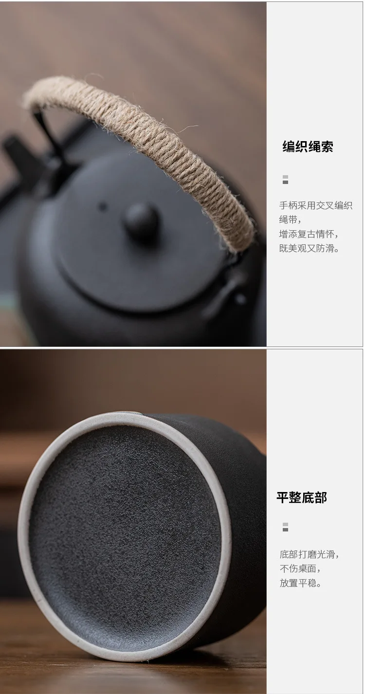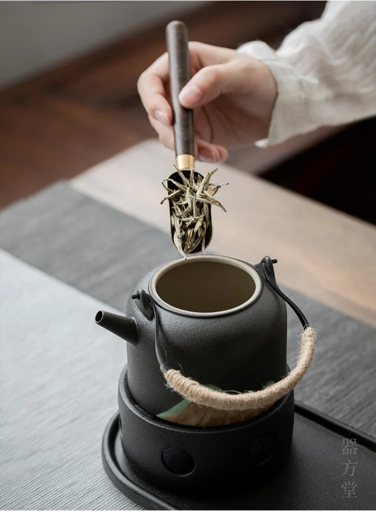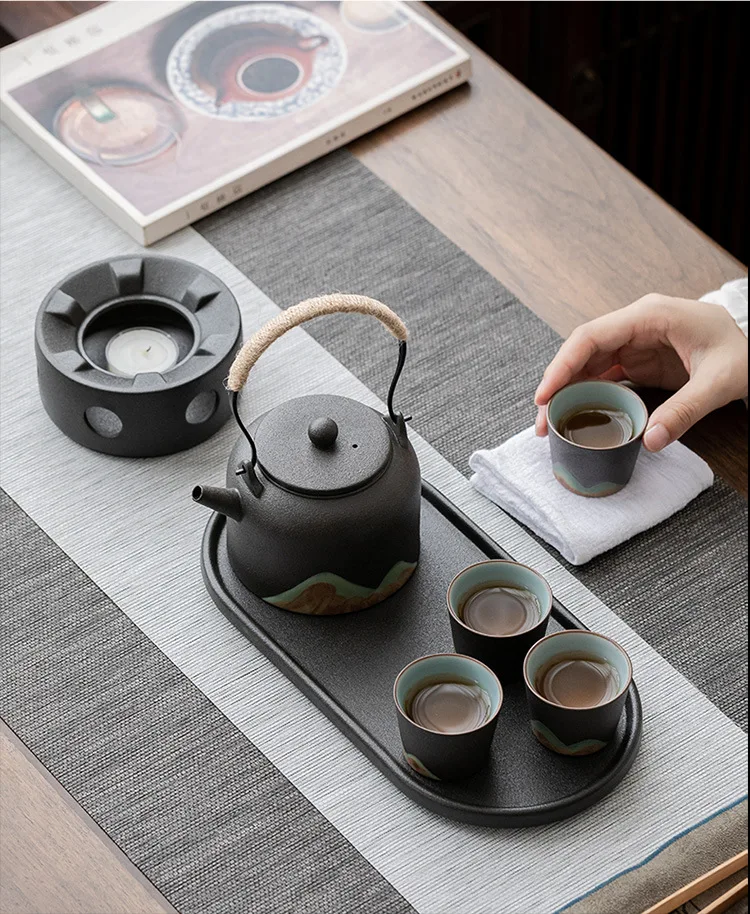 Black Porcelain Ceramic Single Pot, Household Tea Boiler, Kung Fu Tea Set, Vintage Candle Heating, Warm Candle Heating