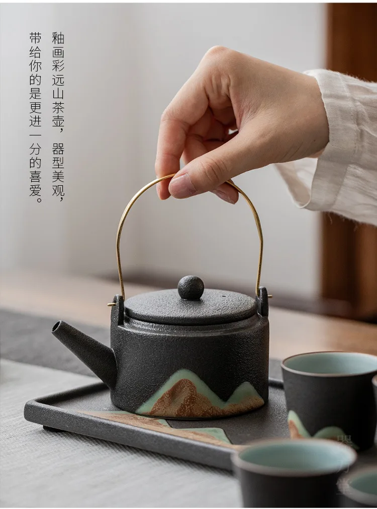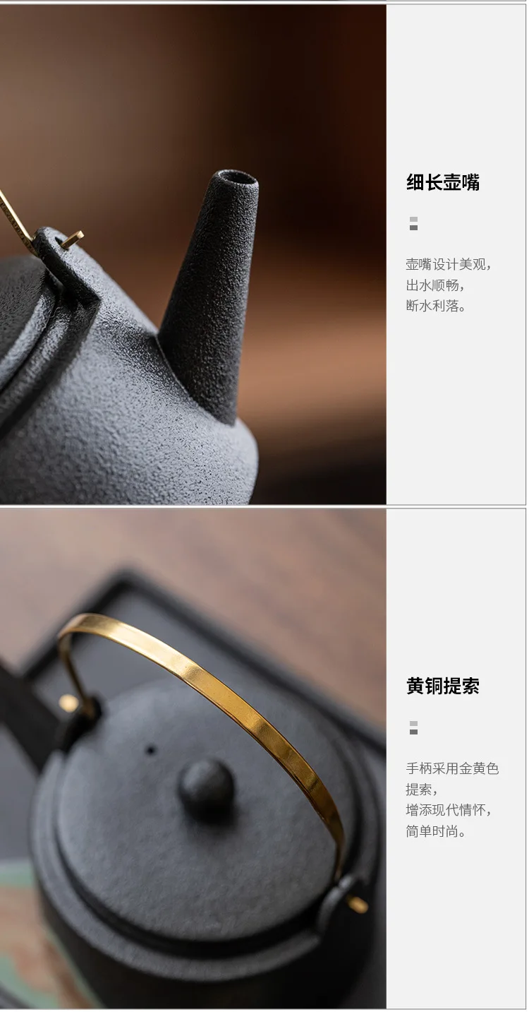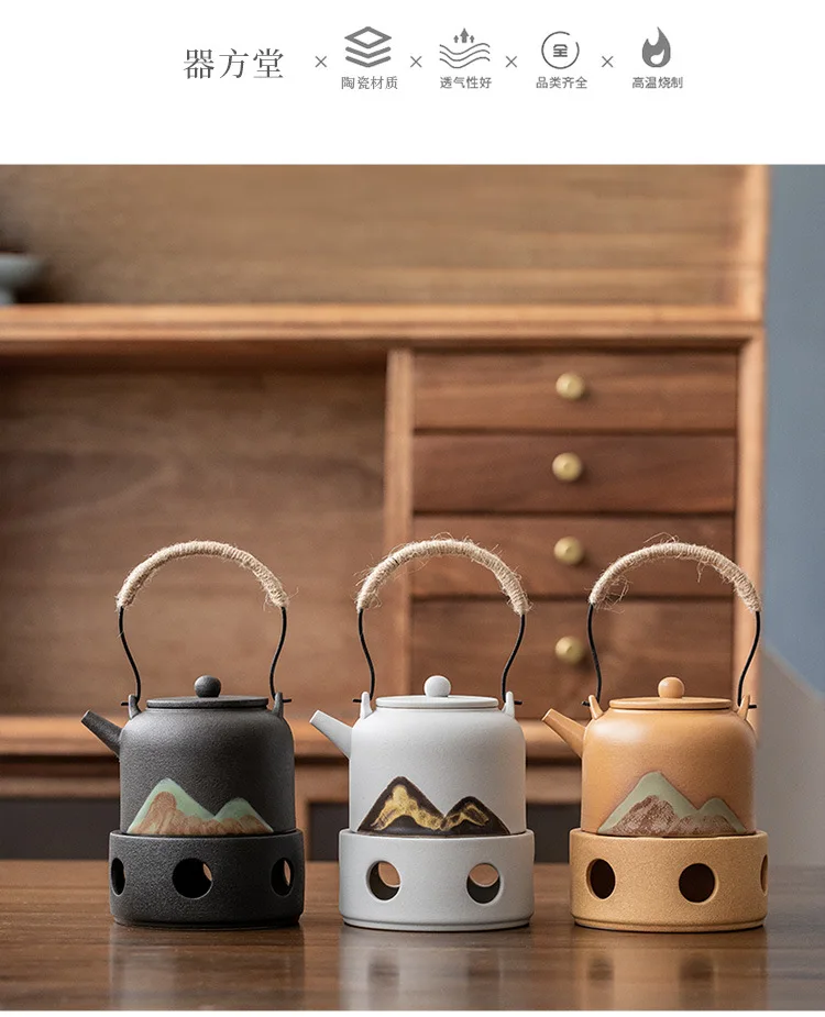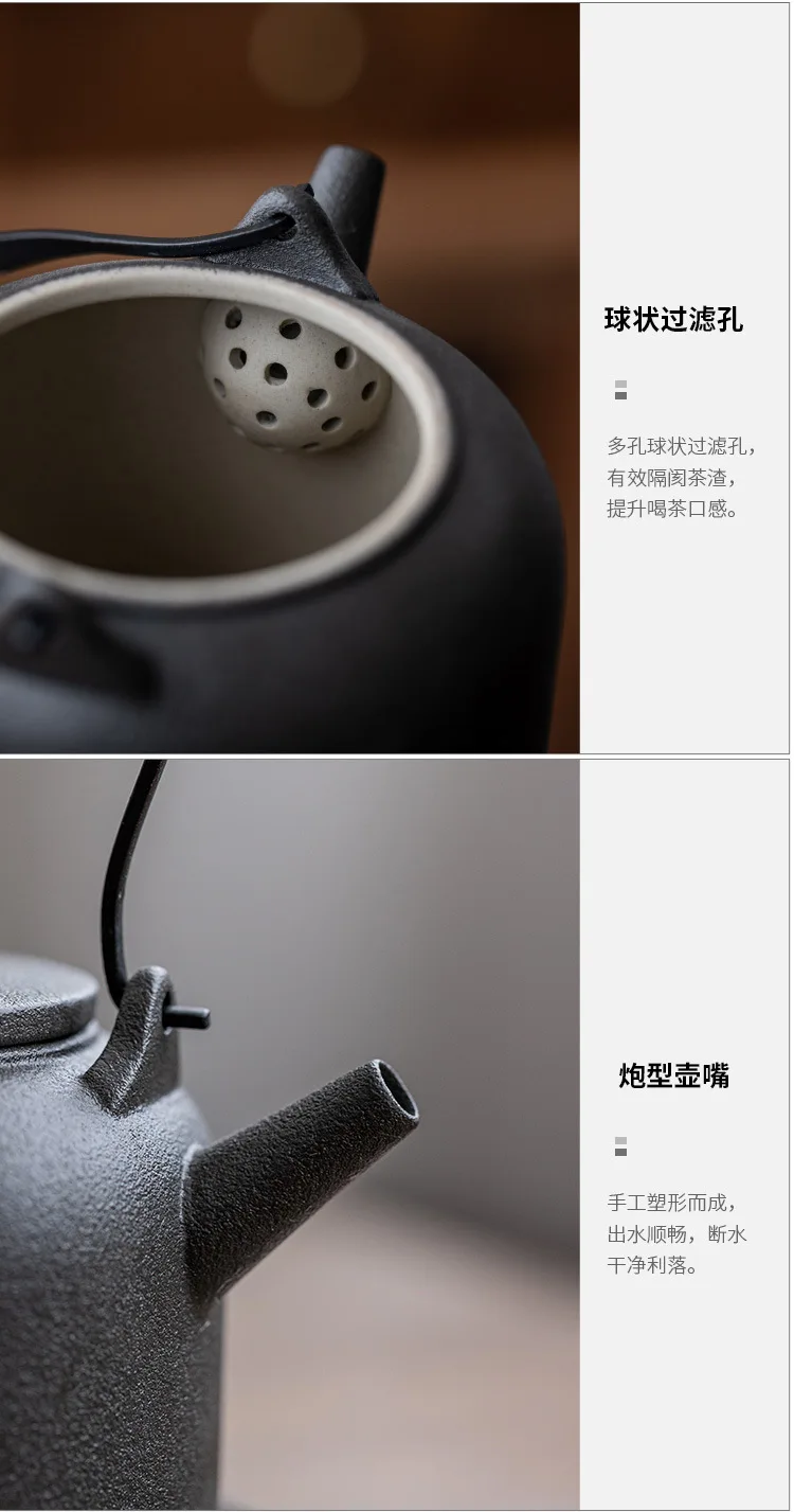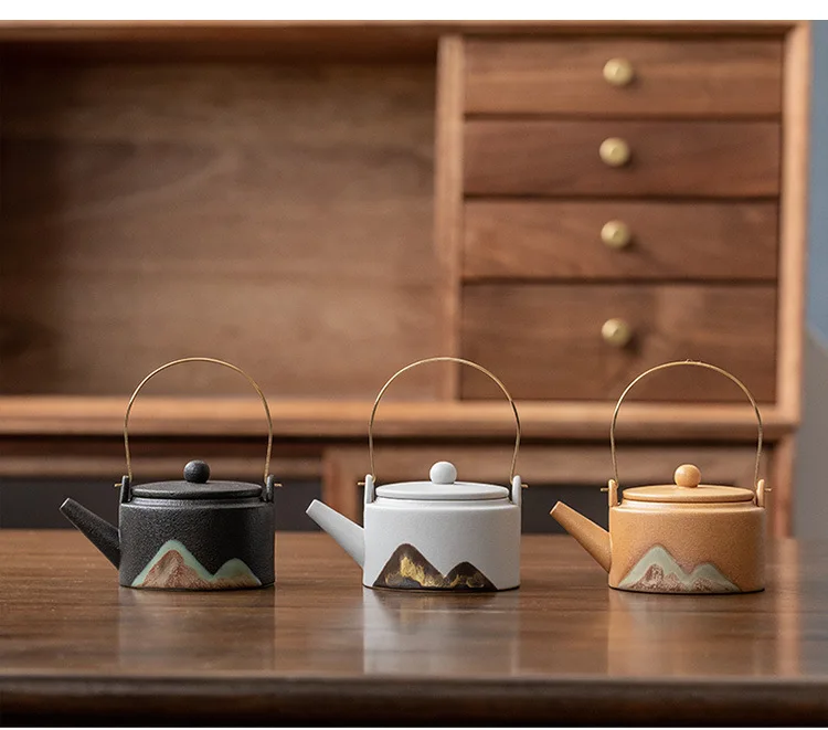 Japanese style teapot ceramic single pot household tea boiler teapot kung fu tea set vintage candle warm tea loop-handled teapot