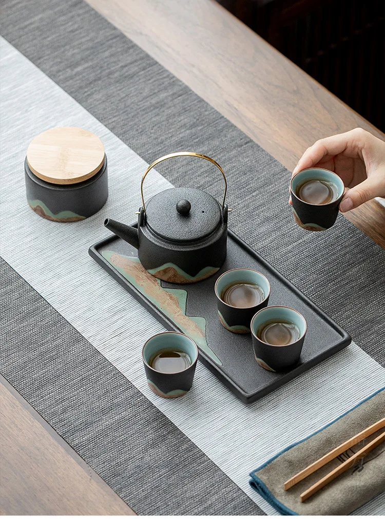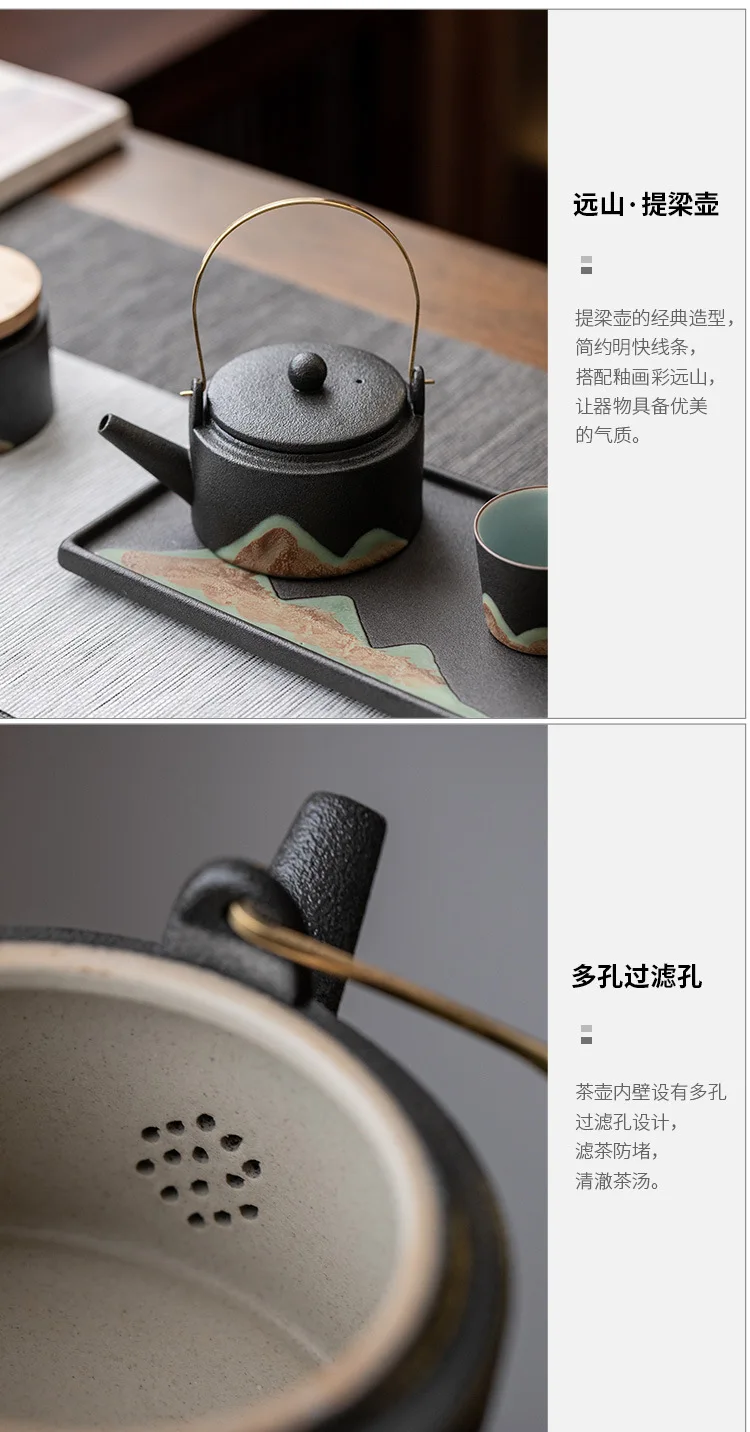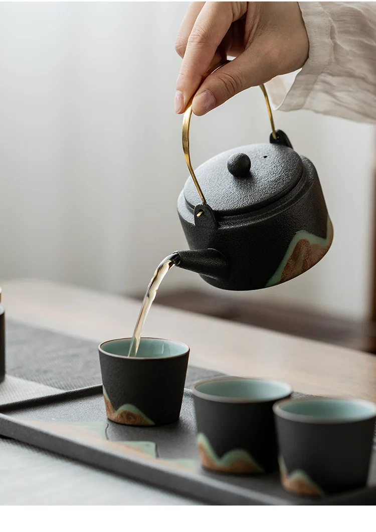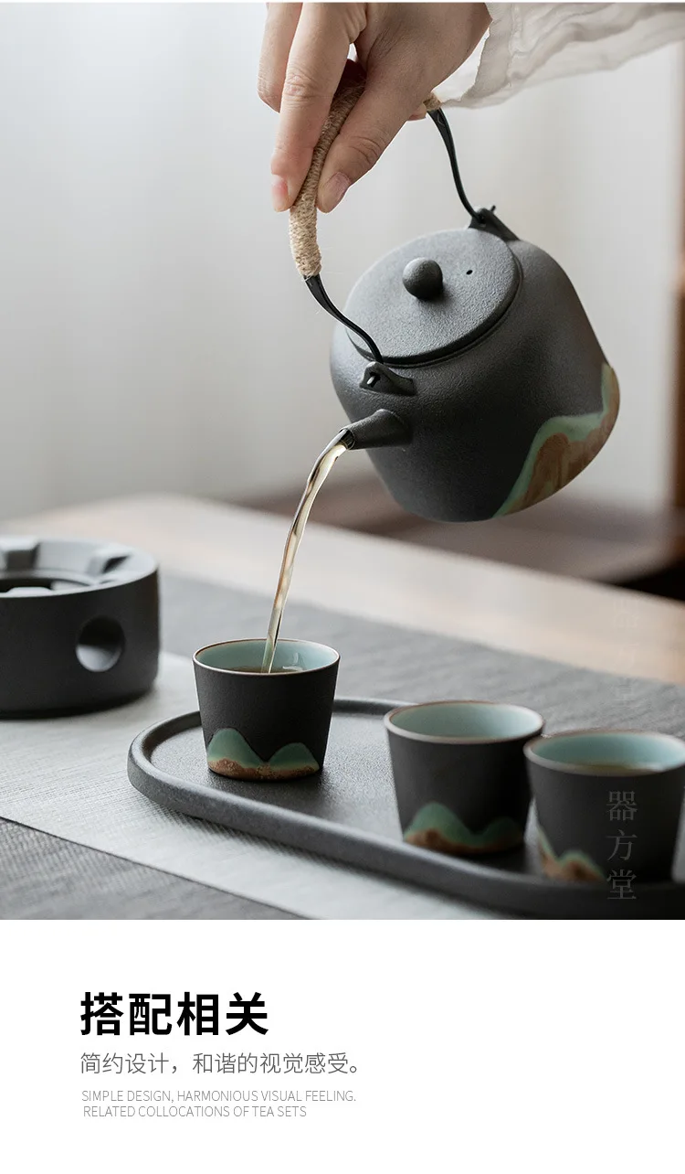 Japanese style teapot ceramic single pot household tea boiler teapot kung fu tea set vintage candle warm tea loop-handled teapot