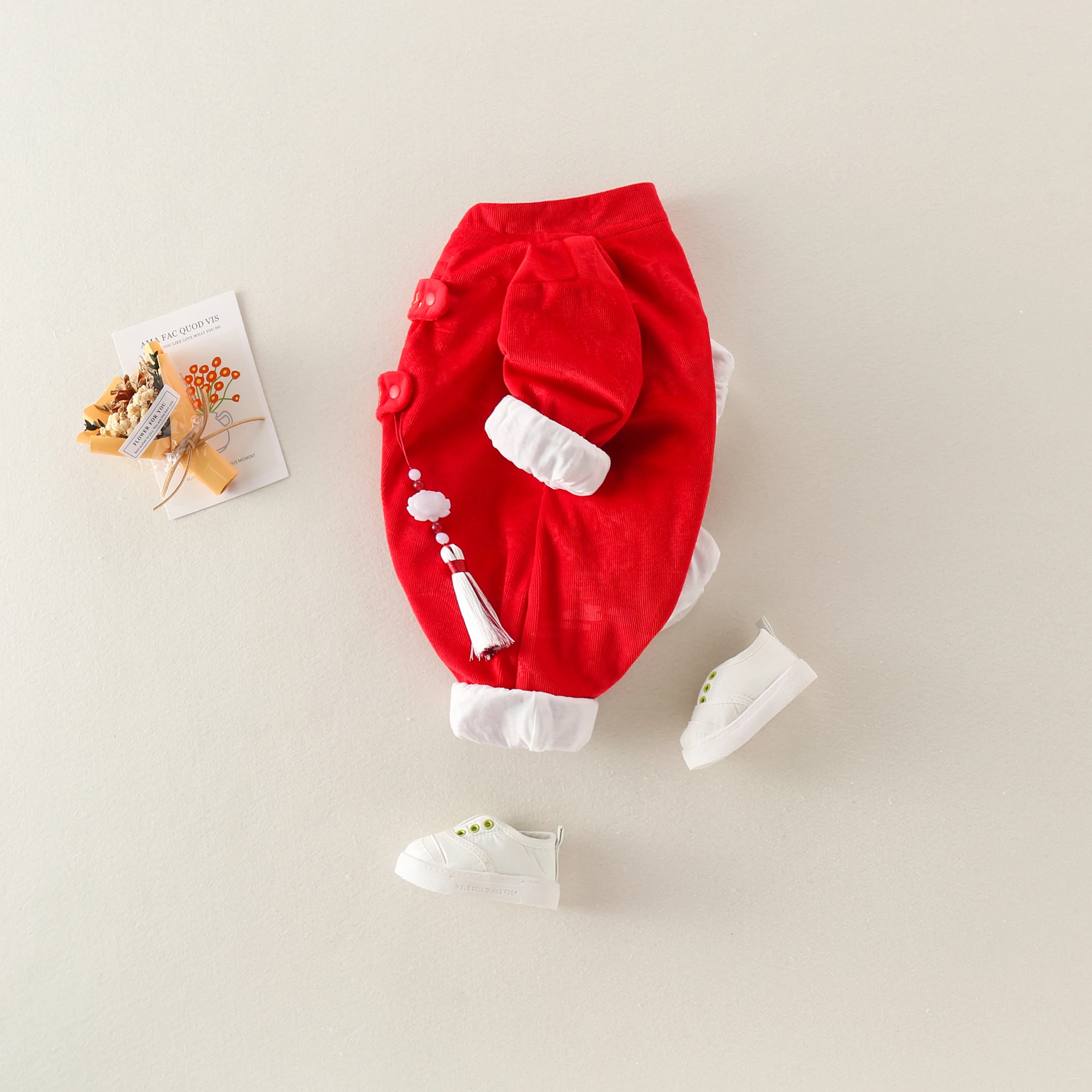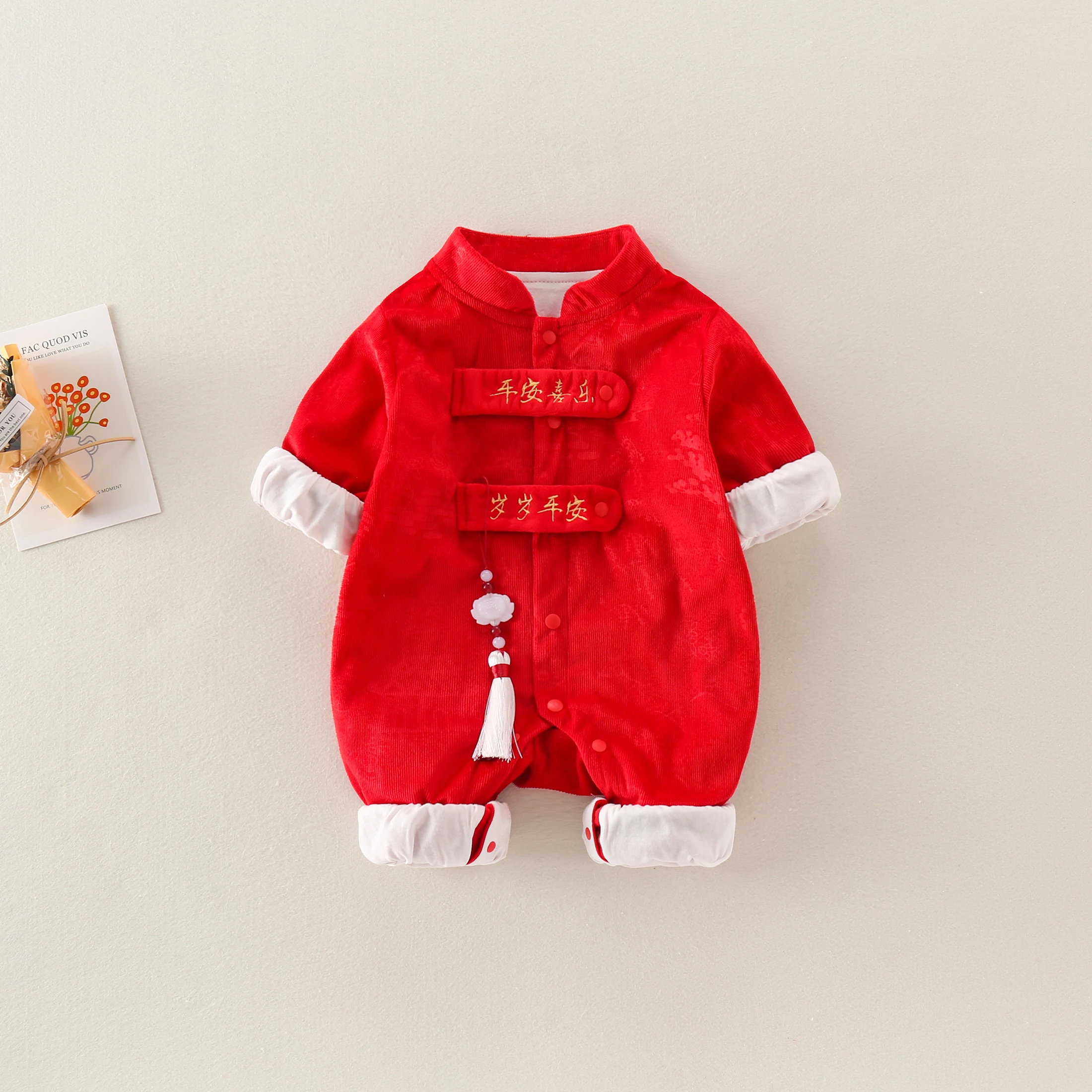 Bright Red Newborn Romper Unisex Baby Suit Meaning Good Luck