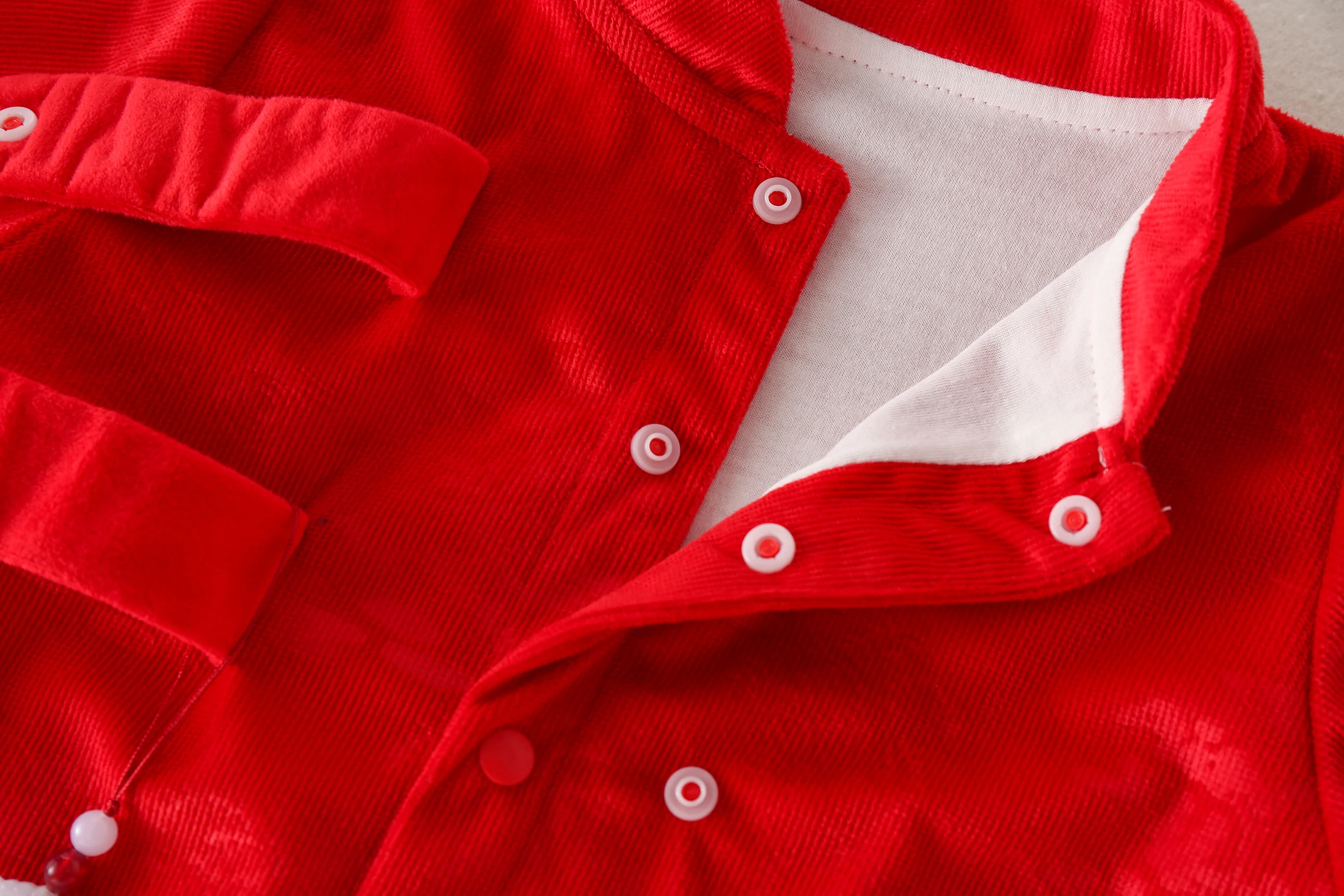 With its bright red color and solid pattern, this romper is suitable for both baby girls and boys.