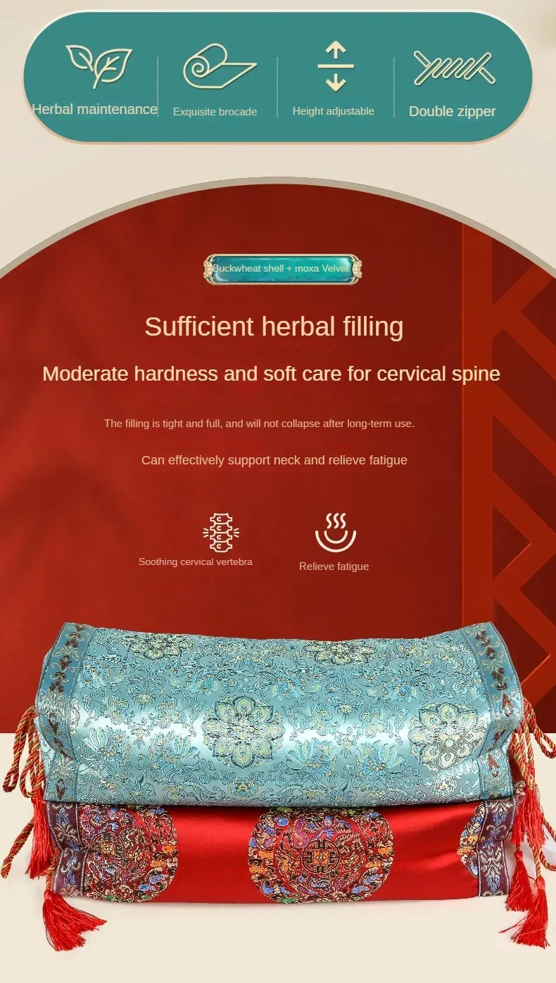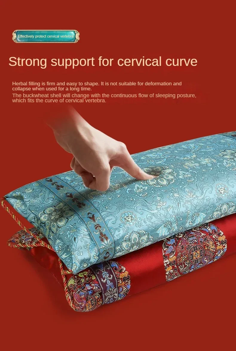 Brocade Mugwort Pillow Core Buckwheat Shell Neck Pillow Sedative Sleep Aid Rectangle Health Pillow Single Person Home Neck Care
