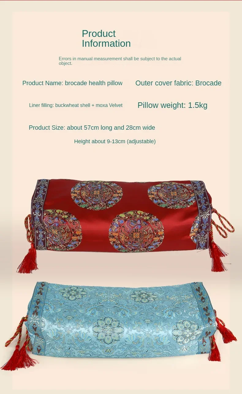 Designed as a traditional-style health and relaxation pillow, this brocade mugwort pillow core combines a buckwheat shell filling with additional herbal elements to help support calm, comfortable rest. The rectangular pillow core features a smooth brocade satin fabric with a Chinese-style aesthetic, offering both functional support and decorative appeal for bedroom use.