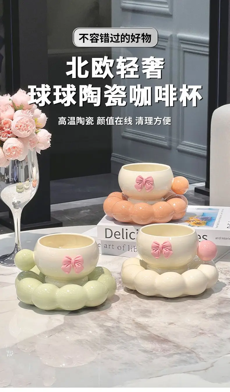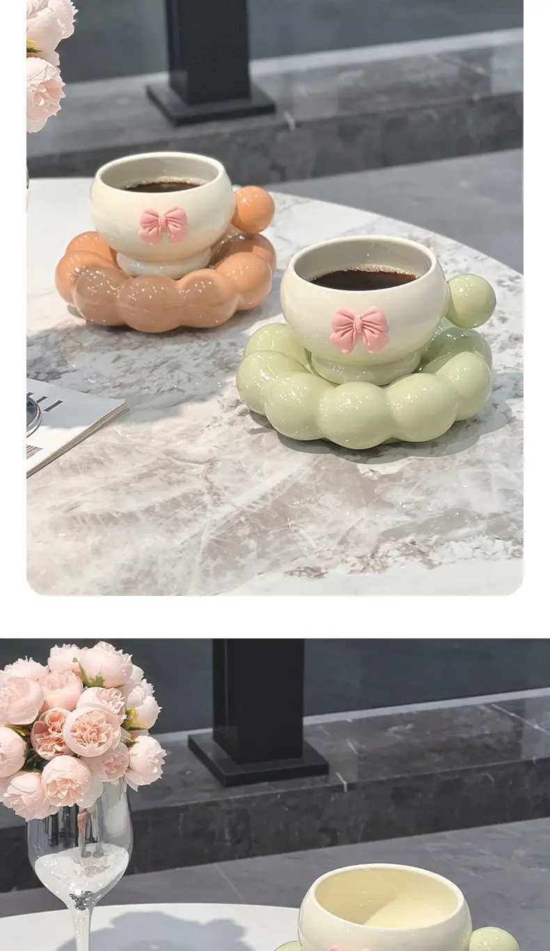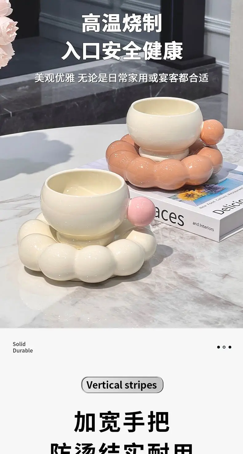 This is a unique ceramic coffee cup and saucer set featuring a charming flower design, perfect for enhancing your afternoon tea or coffee experience.