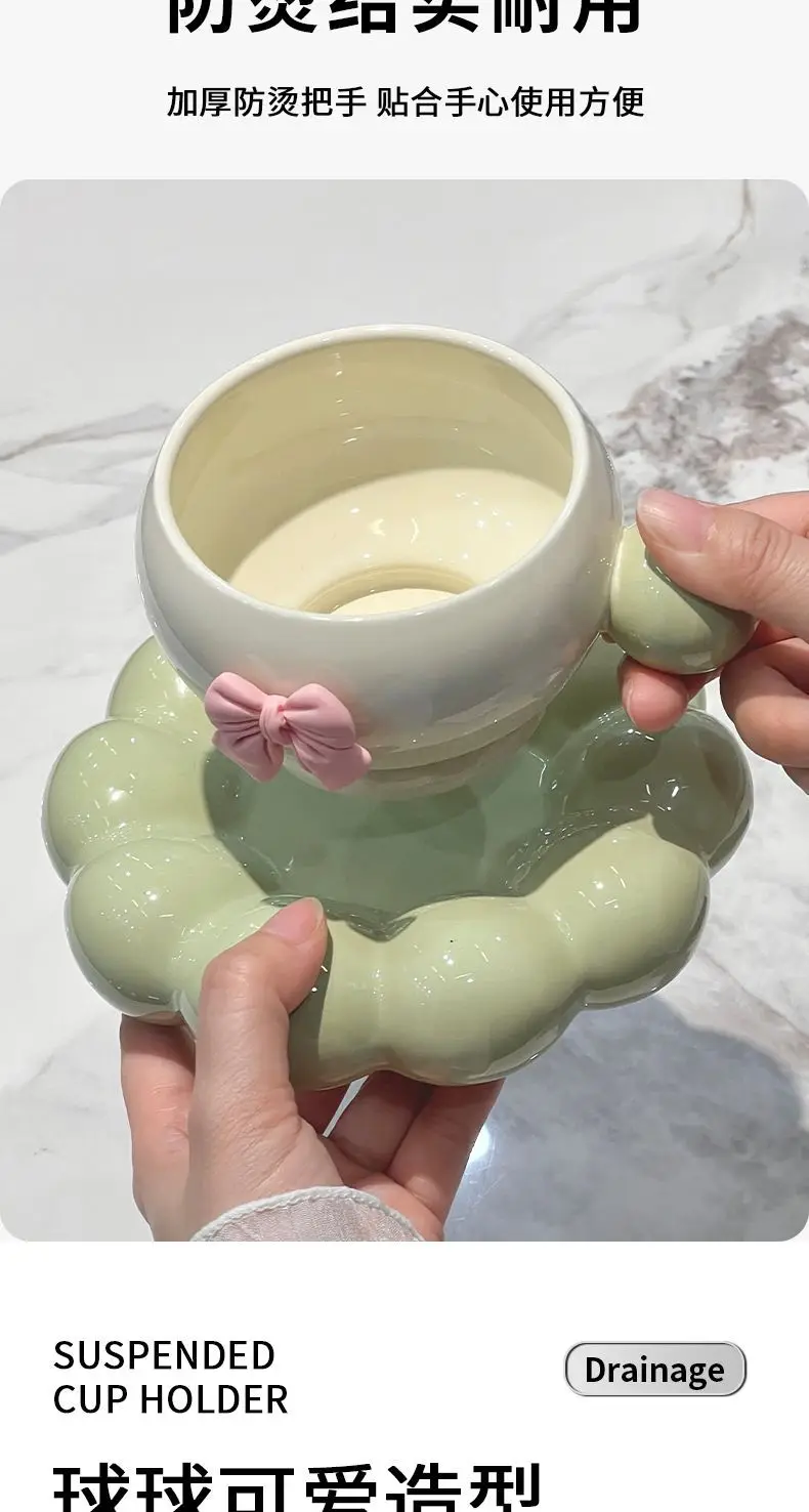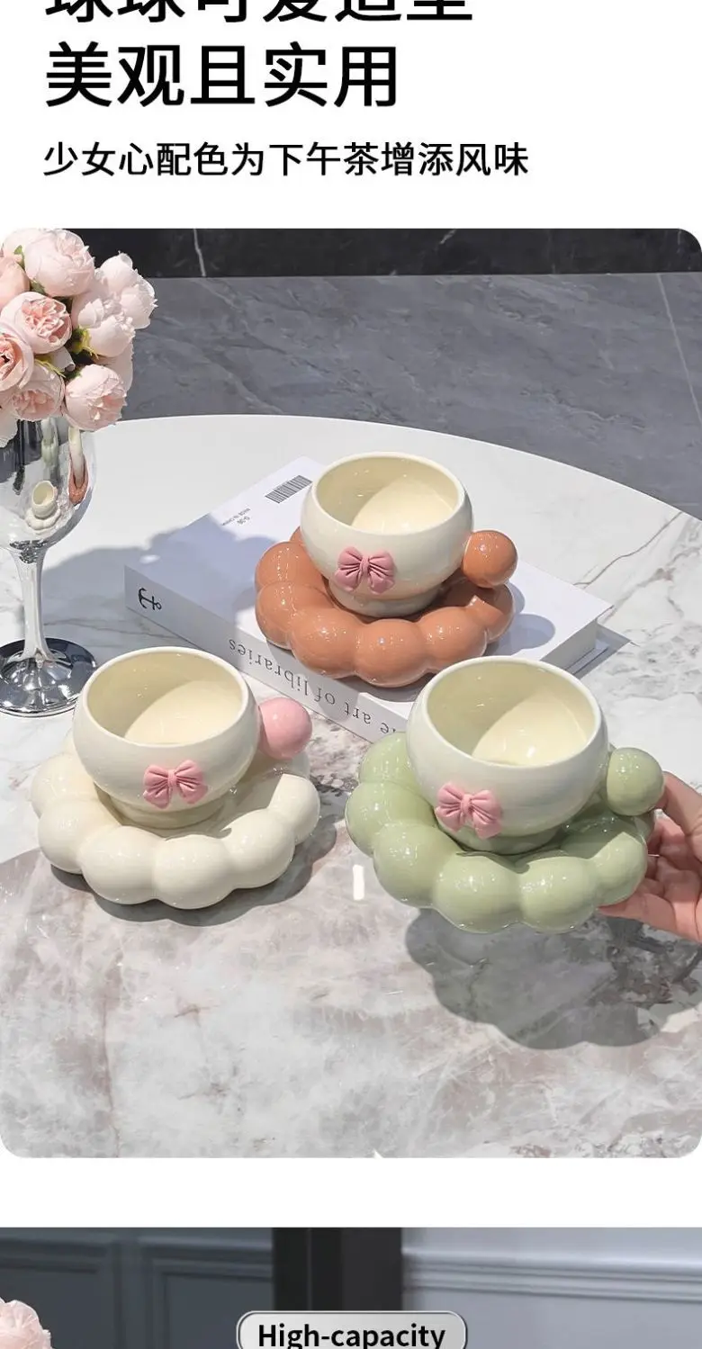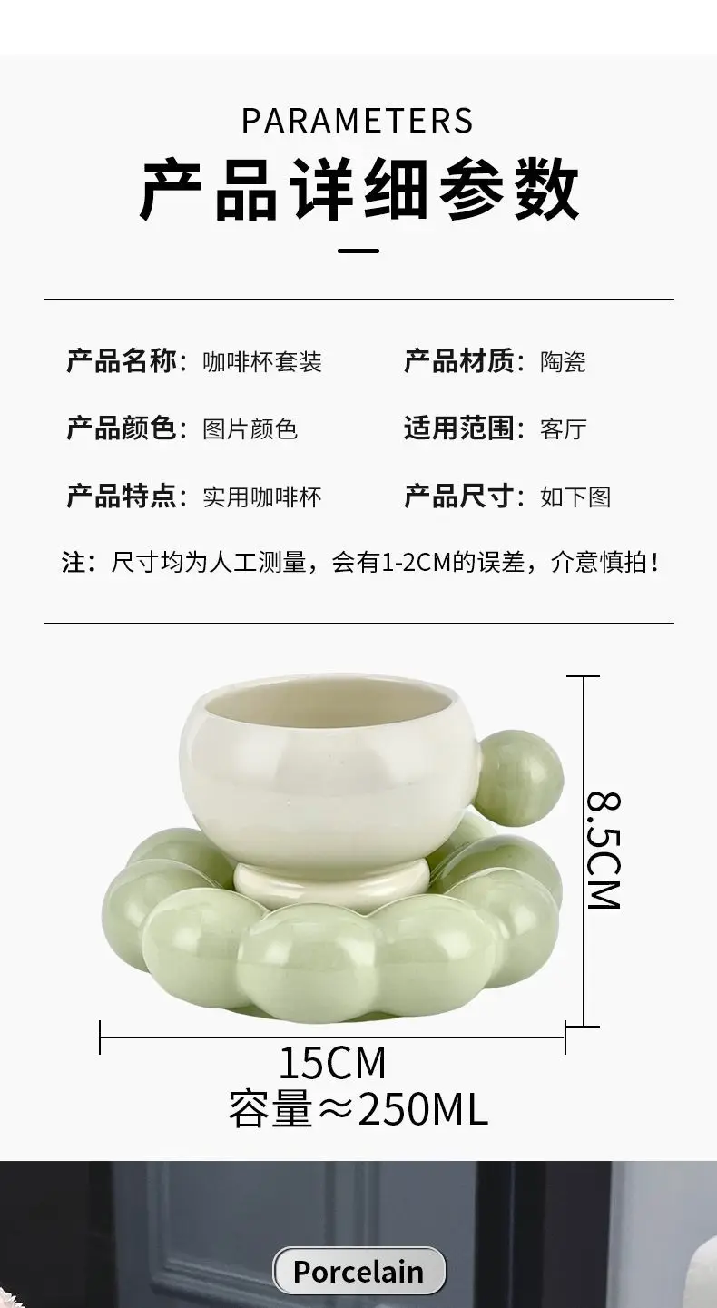 This is a unique ceramic coffee cup and saucer set featuring a charming flower design, perfect for enhancing your afternoon tea or coffee experience.