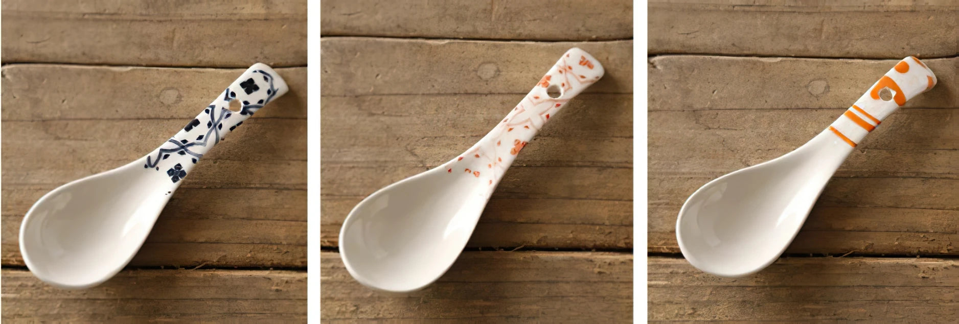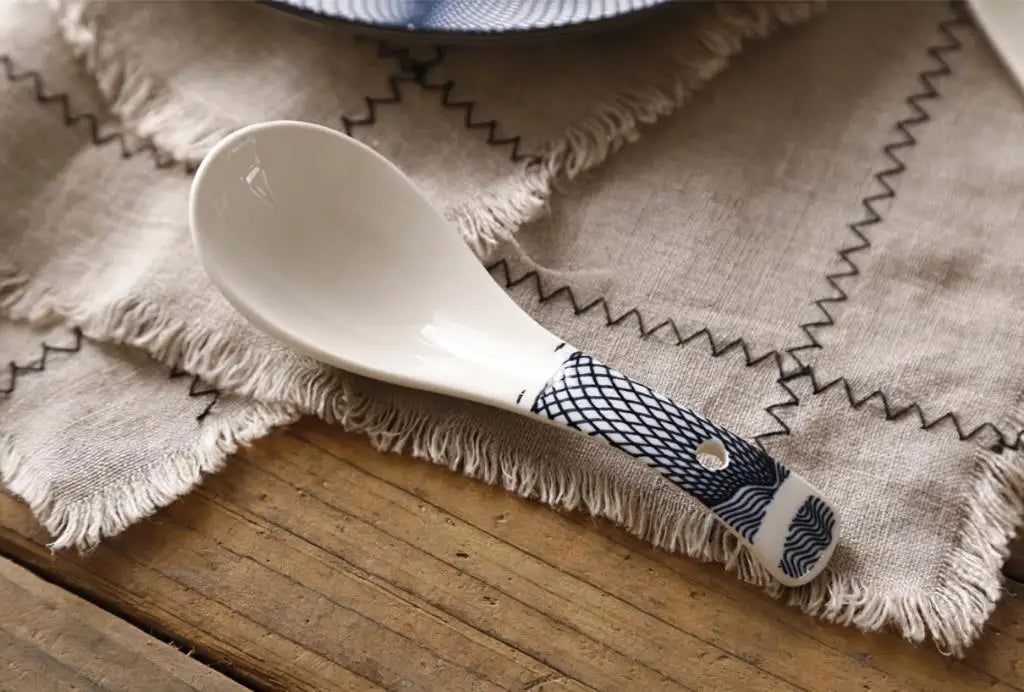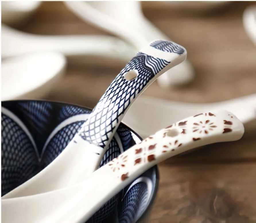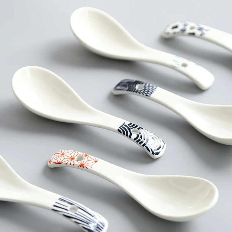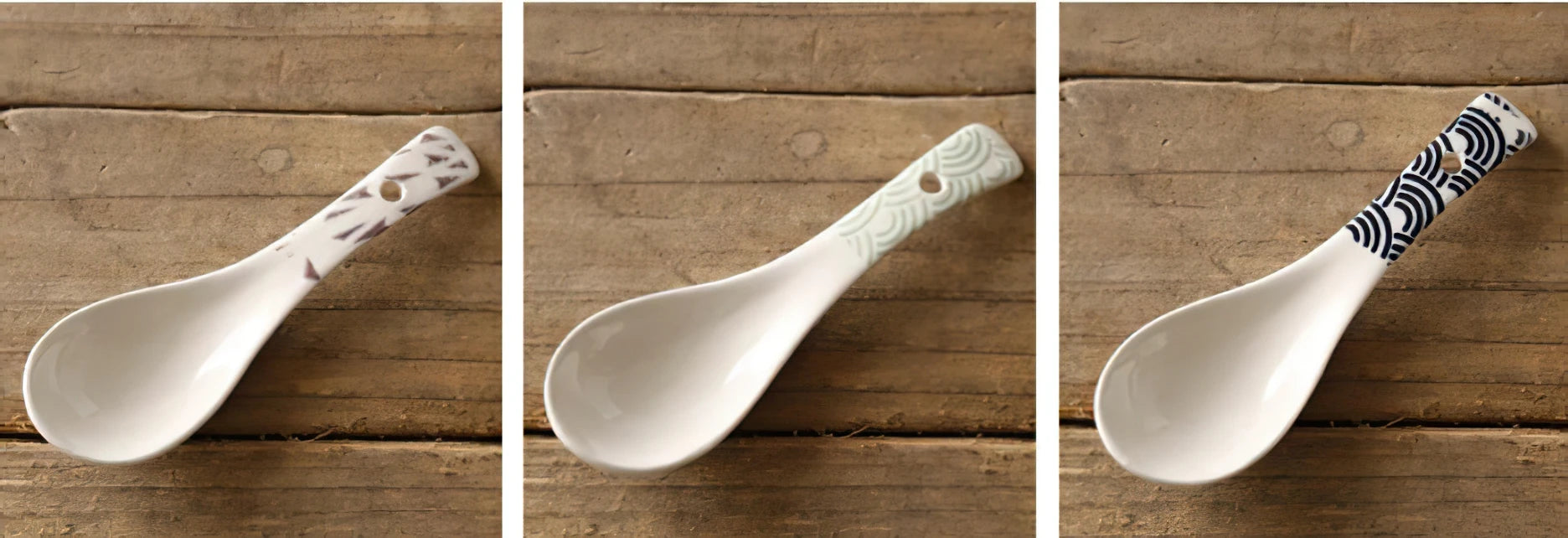 This is a ceramic multi-function spoon designed for serving porridge, soups, and more, combining functionality with a Japanese aesthetic.