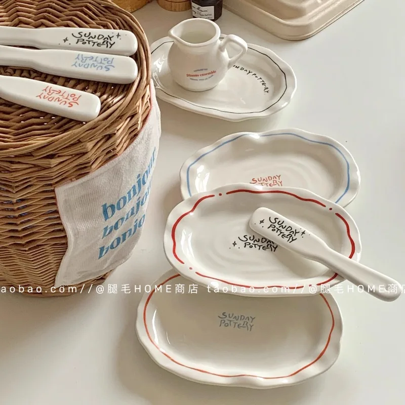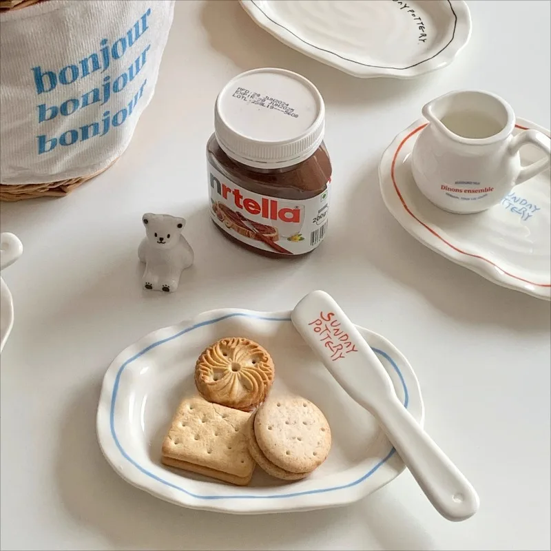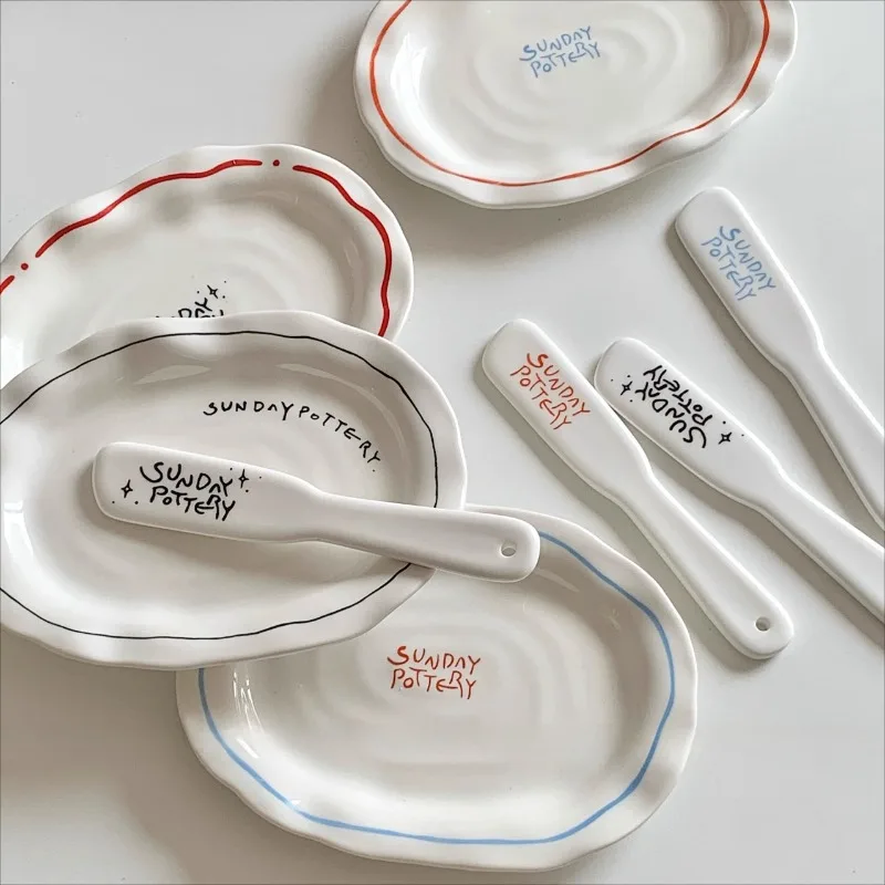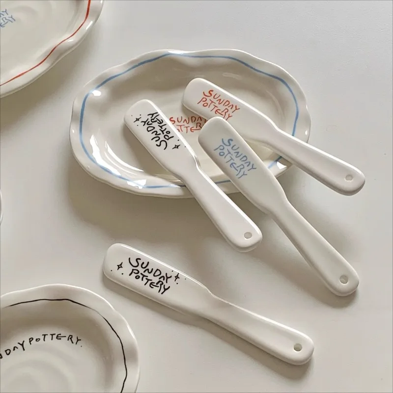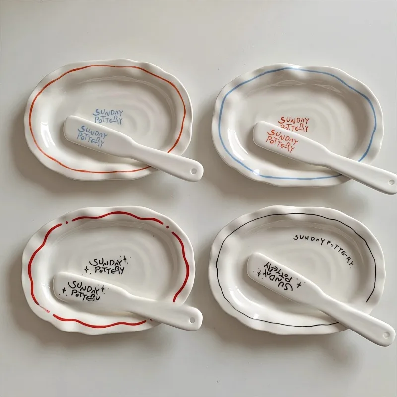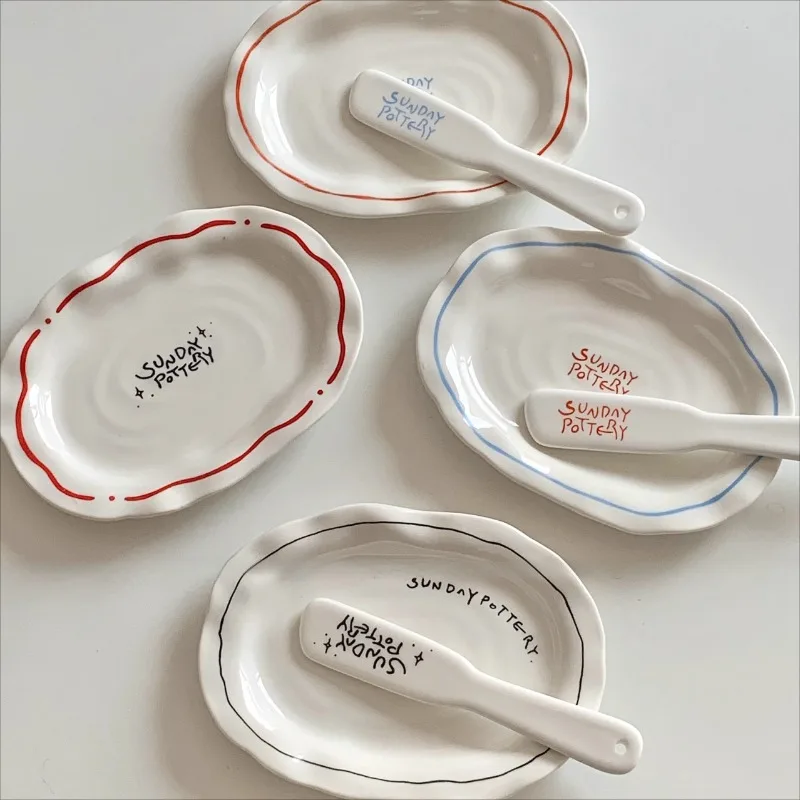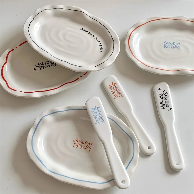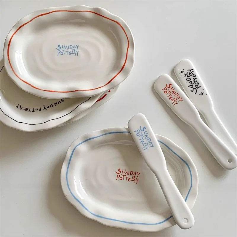 Ceramic Oval Breakfast Dessert Plate with Butter Knife | Multifunctional