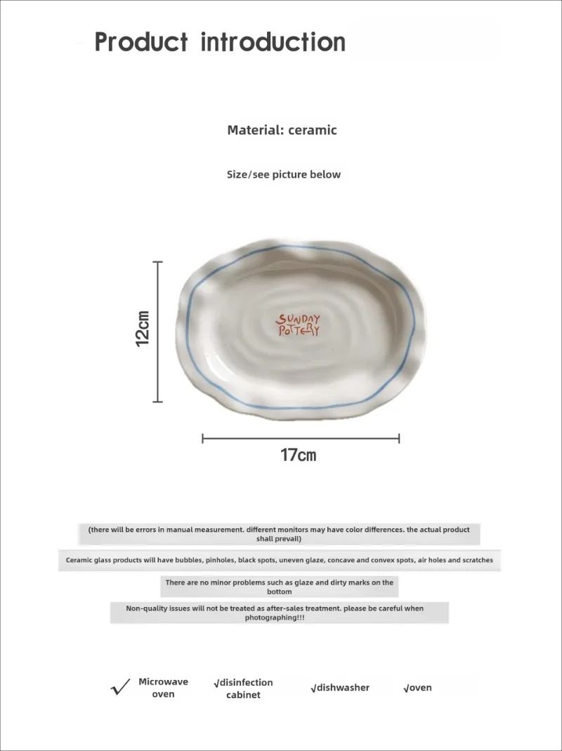 Transform every meal into a delightful experience with our stunning Ceramic Oval Breakfast Dessert Plate. Designed with a unique irregular shape and minimalist style, this plate is not just a piece of dinnerware, it's a statement of elegance for any table setting.