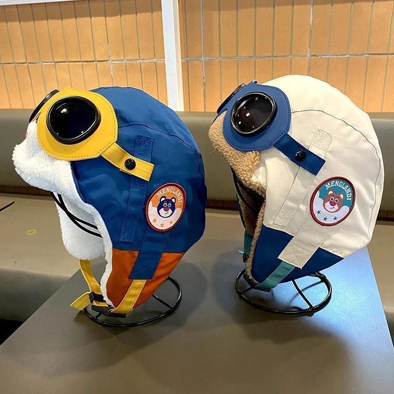 Cute children's pilot aviator hat with detachable goggles for winter 2026. Thick fleece lining, windproof & ear protection. Perfect outdoor play, skiing & cold weather fun for kids!