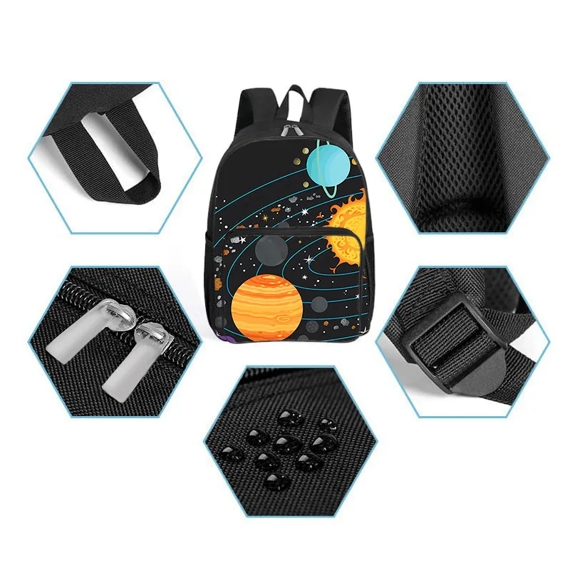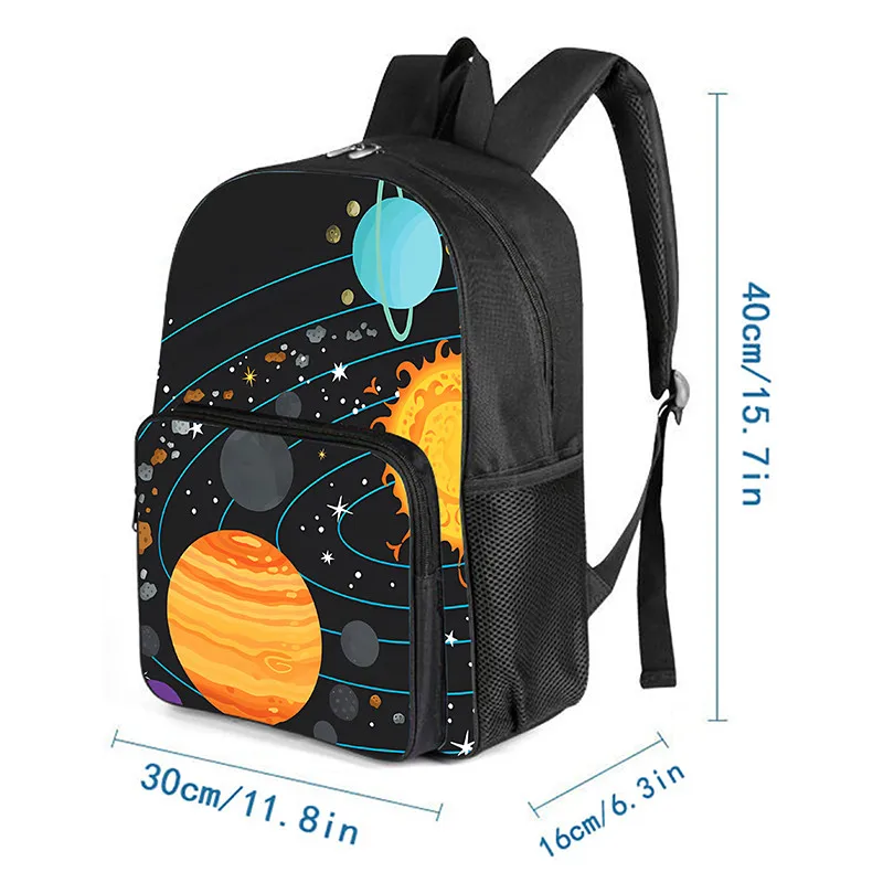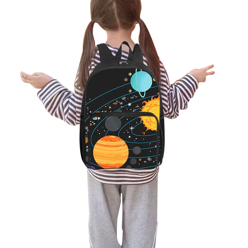 Cosmic Planet Pattern Square Front Pocket Backpack for Boy and Girls Best Gifts 2D Flat Cartoon SchoolBags for Children