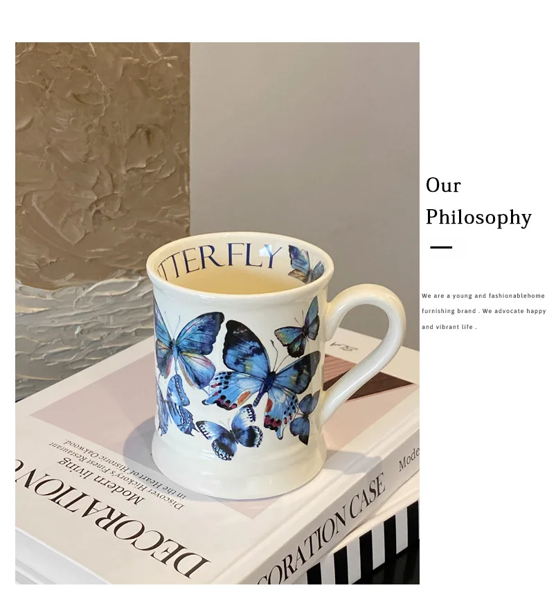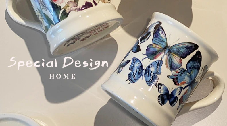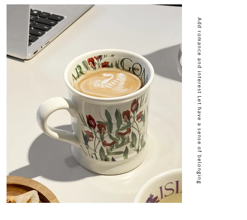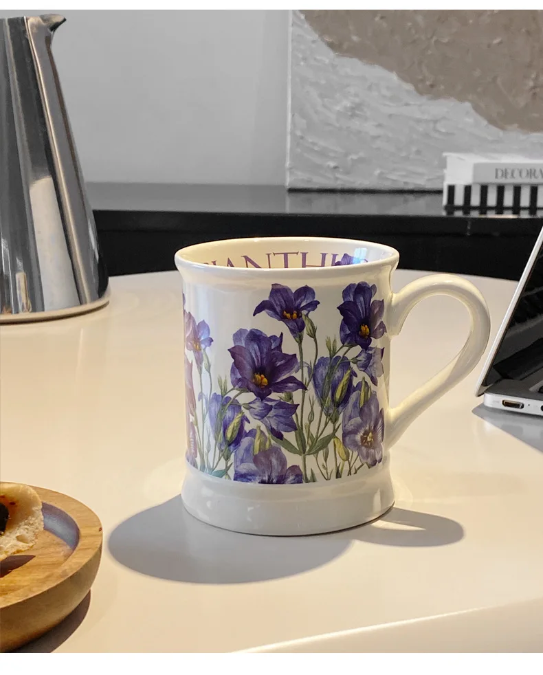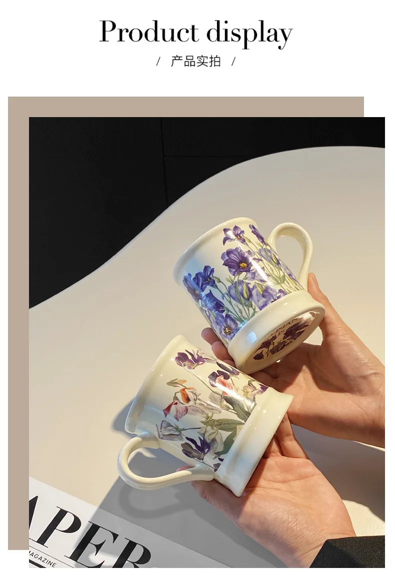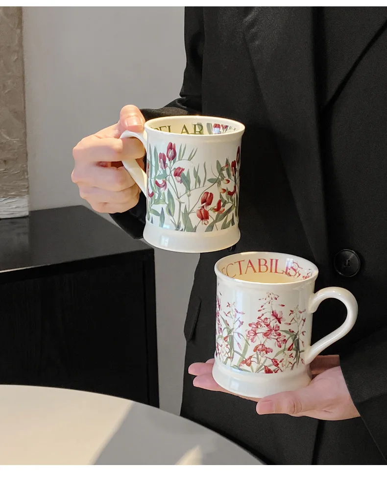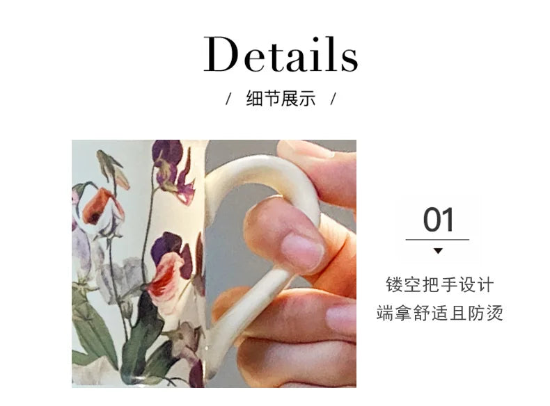 Creative Flower Classical Ceramic Cup Breakfast Milk Oatmeal Coffee Cup Household Kitchen Office Hand-painted Cups 380ml Gift