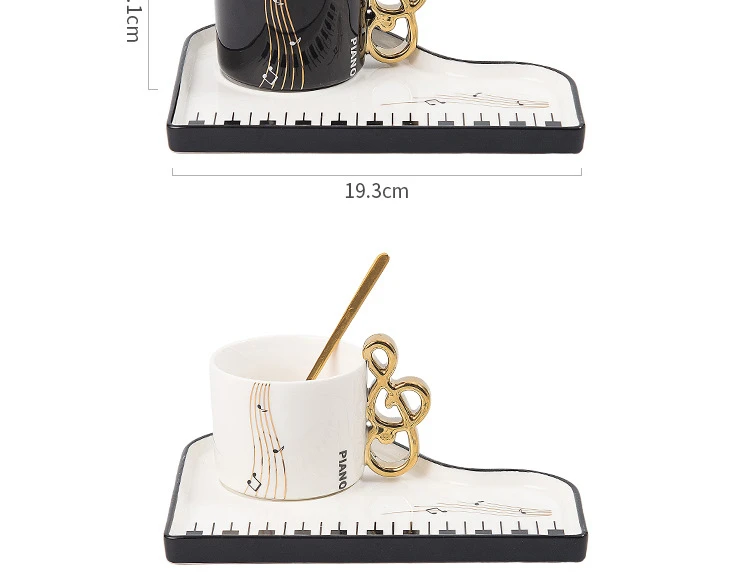 This is a creative 200ml ceramic coffee mug set with a piano-inspired design, perfect for music lovers.