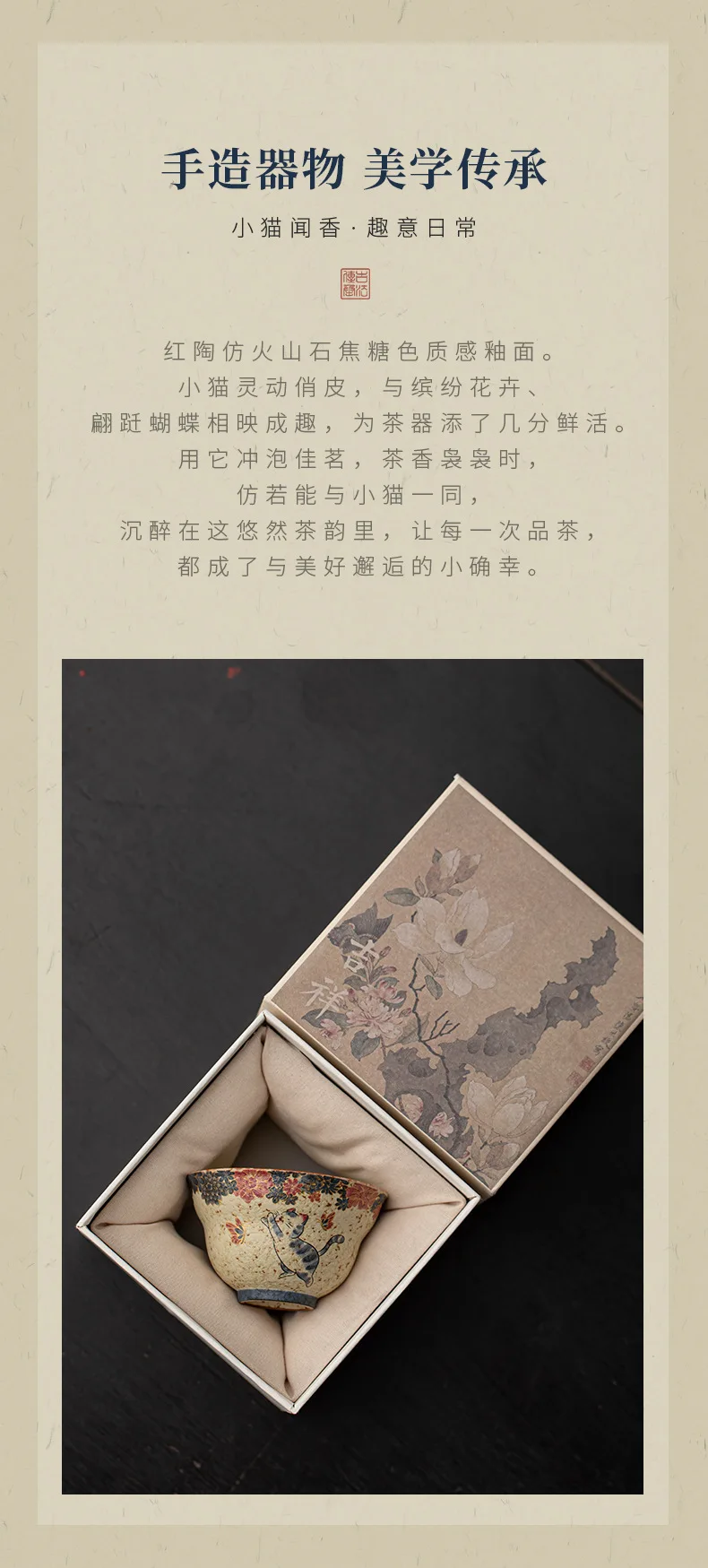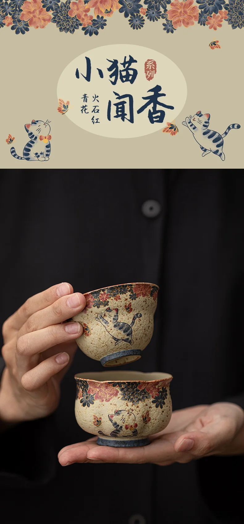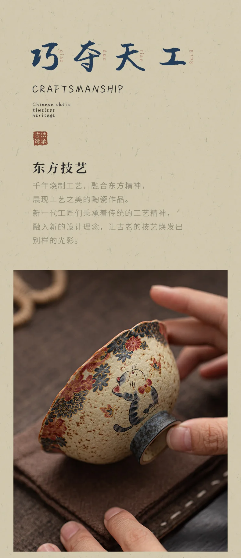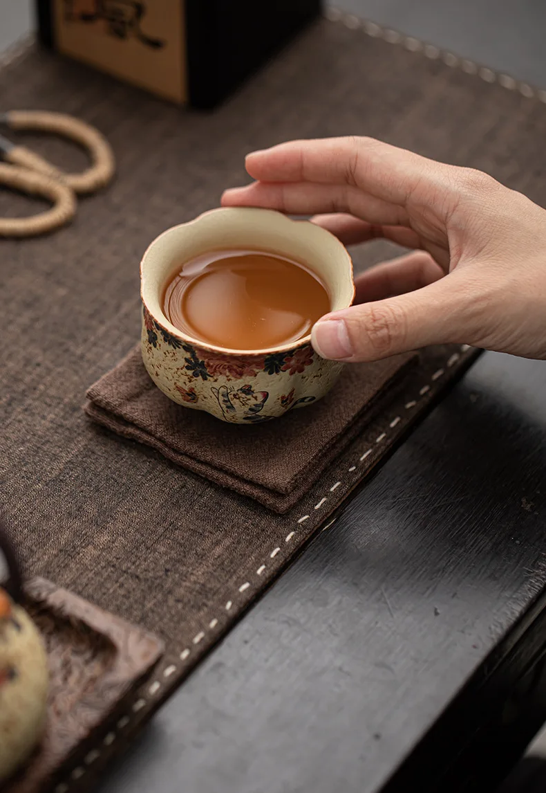 Cute Cat Vintage Teacup Chinese Coarse Pottery Ceramic Opening Cup Pottery Beautiful Tea Cups Set Teaware for Kung Fu Tea
