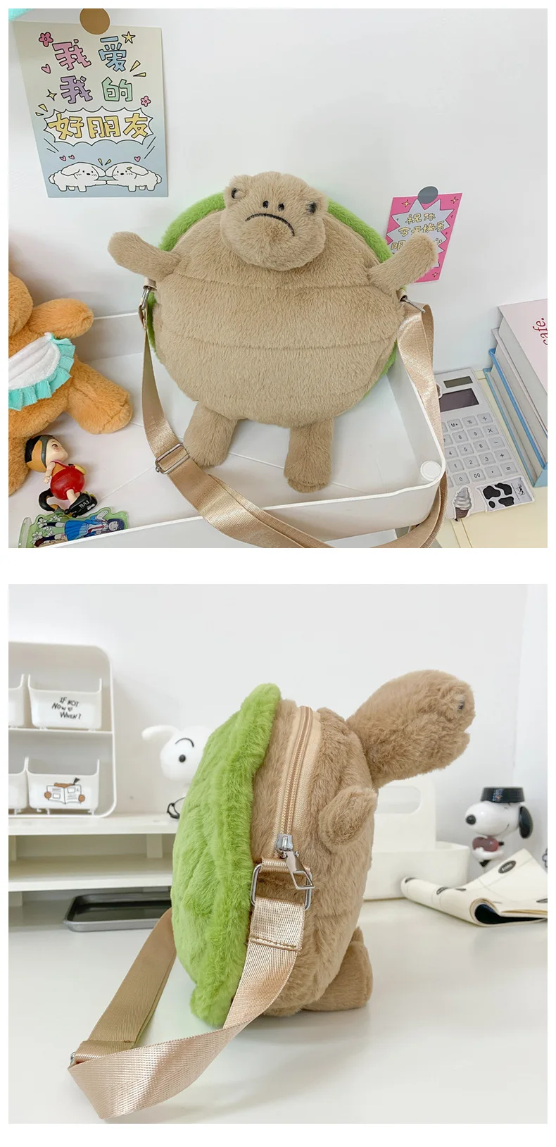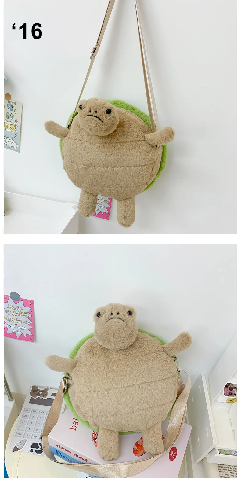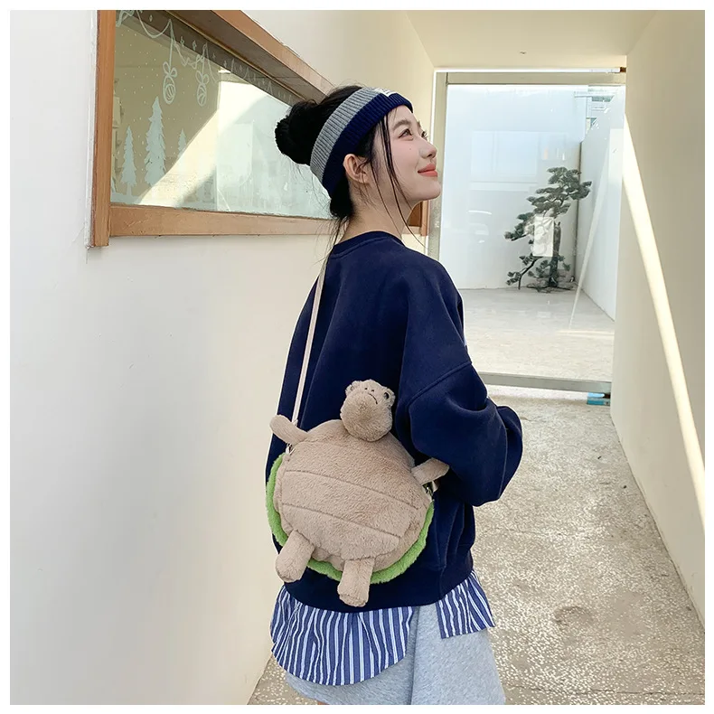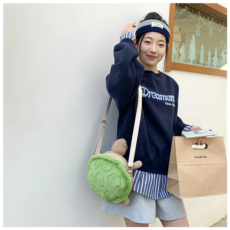 Cute Little Turtle Plush Backpack Kawaii Stuffed Doll Plushie Cartoon Toy Single Shoulder Bag Crossbody Backpack Creative Gift