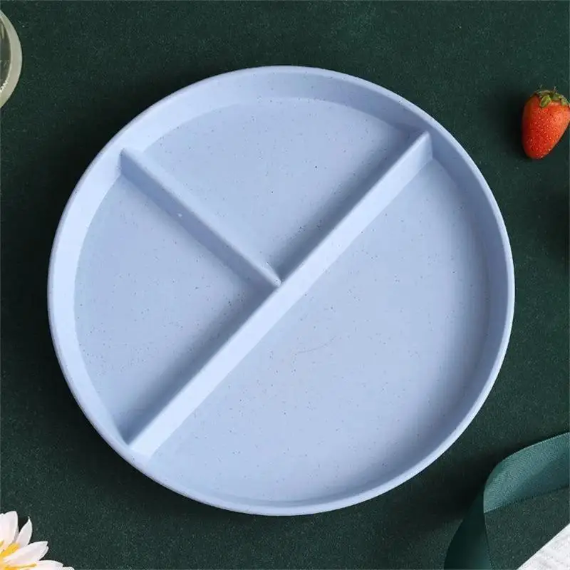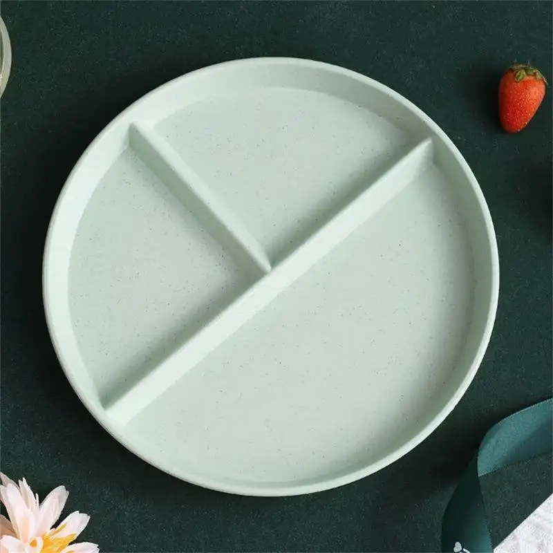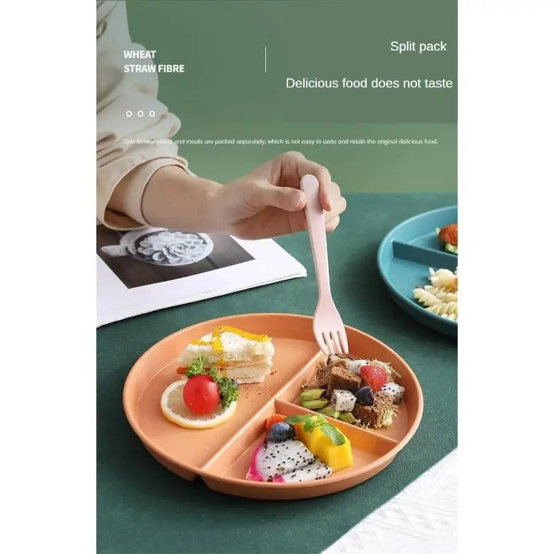 The divided dish is made from wheat straw material, which is safe for direct food contact.