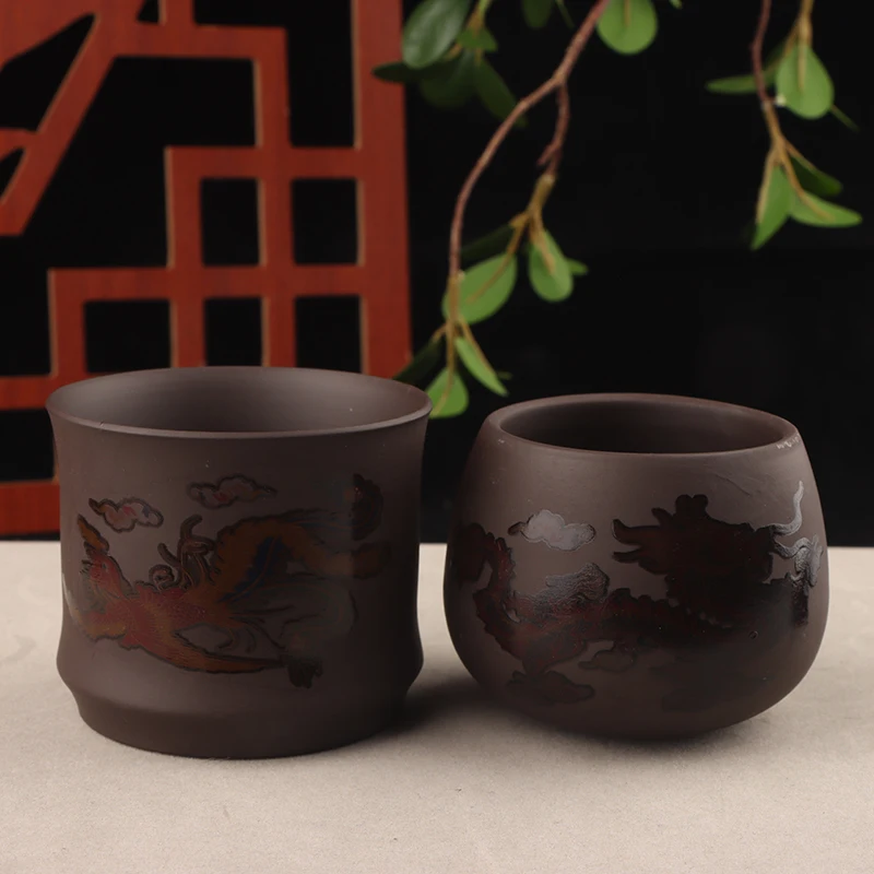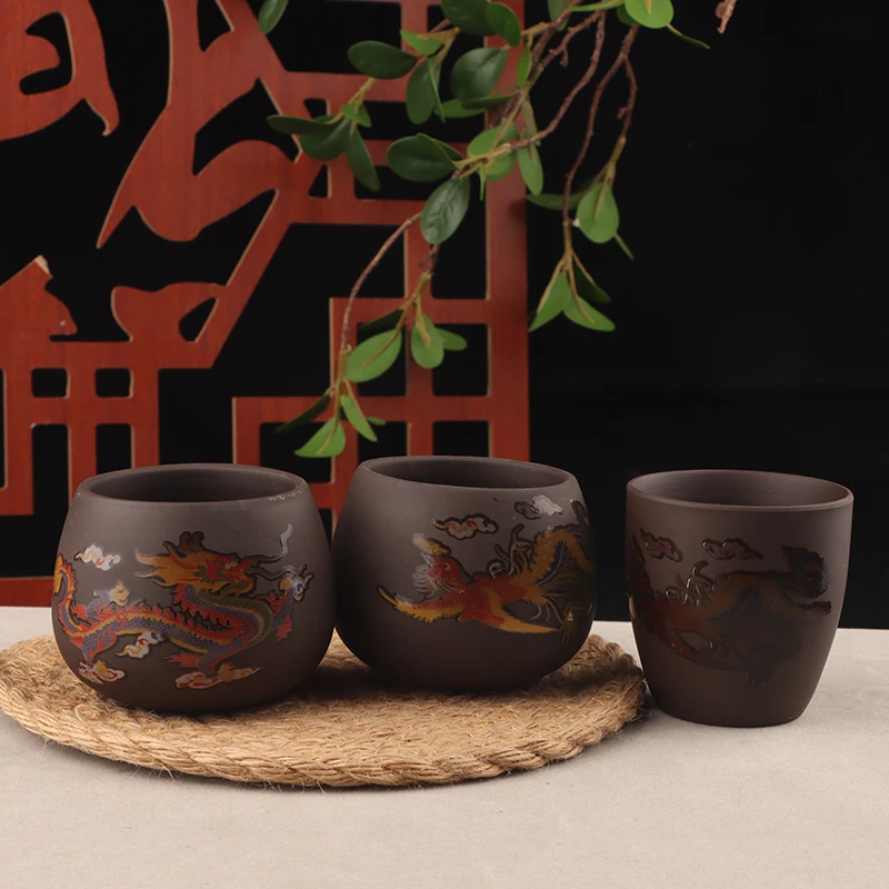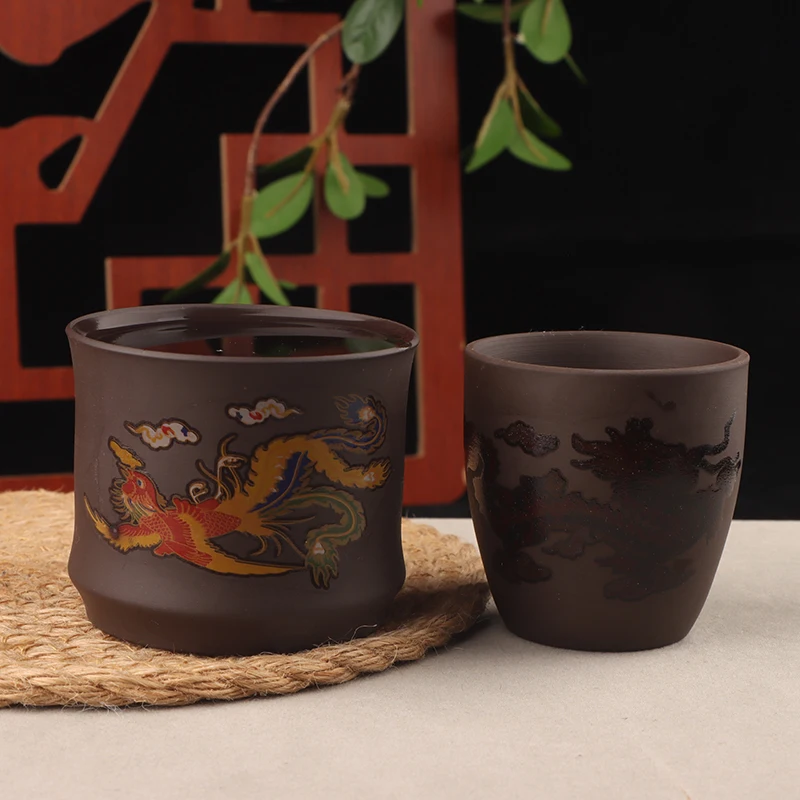Dragon Phoenix Tea Cup Chinese Style Color-changing Purple Clay Tea Cup Anti-Scald Tea Brewer Tea Bowl Drinkware Tea Set