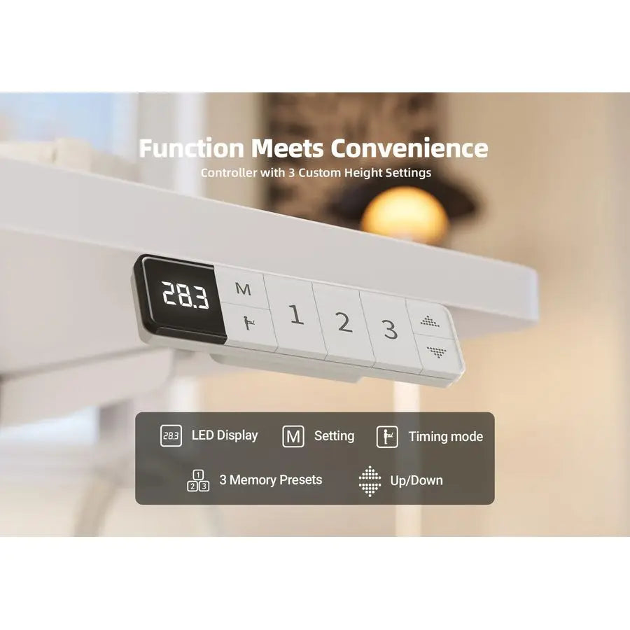 - Smooth Electric Height Adjustment: Effortlessly transition between sitting and standing with three customizable height presets at a touch of a button.