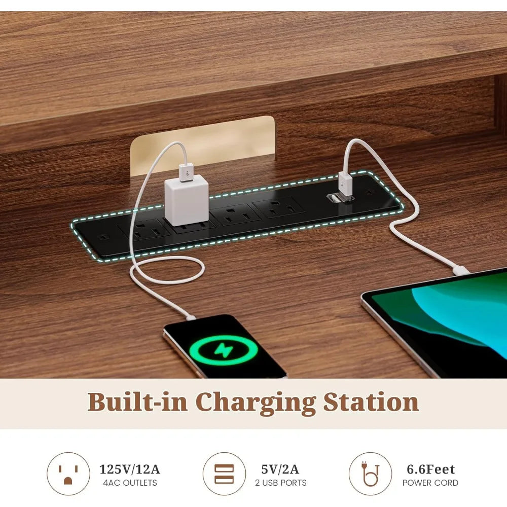 Stylish 60'' Farmhouse Executive Desk with Outlet & LED Light