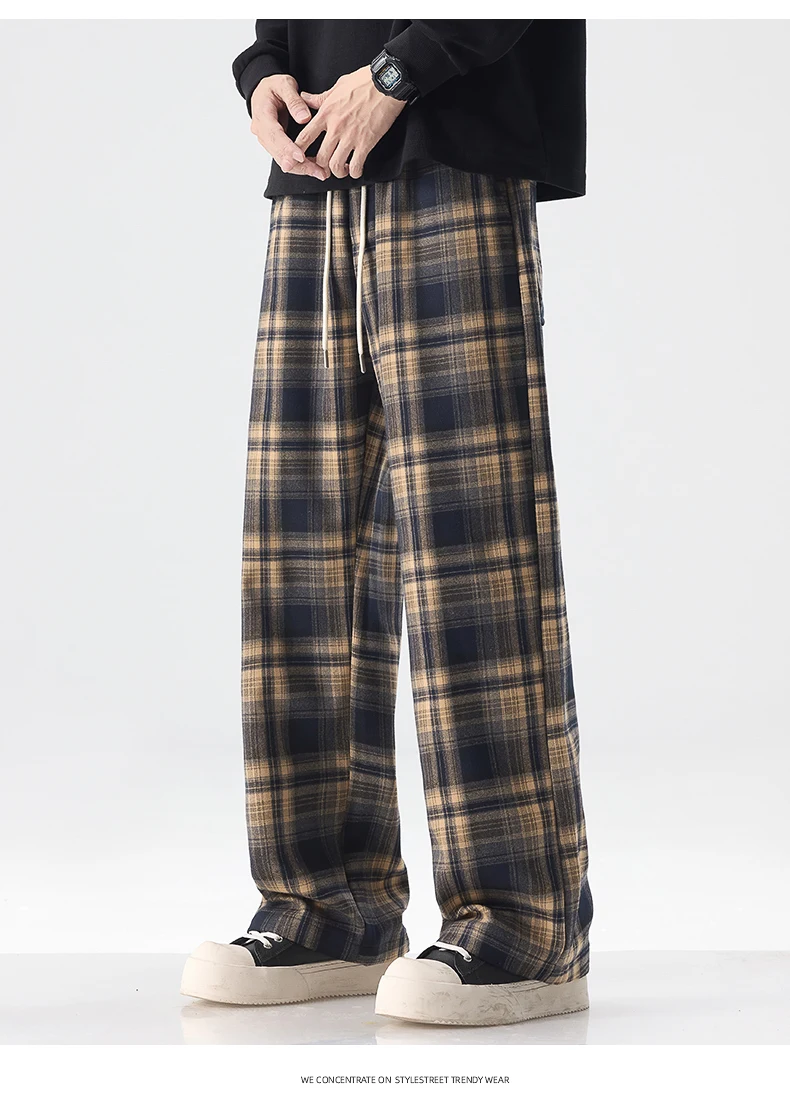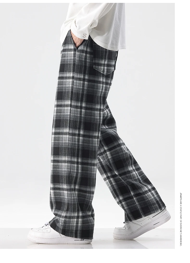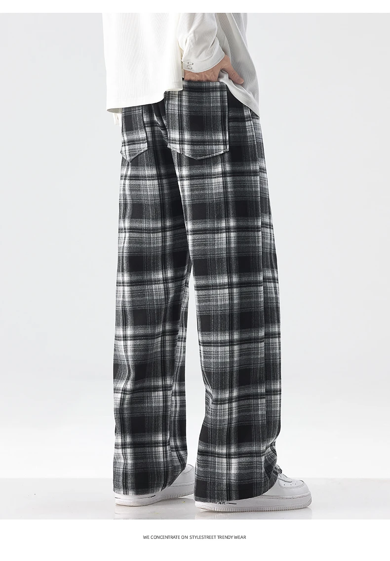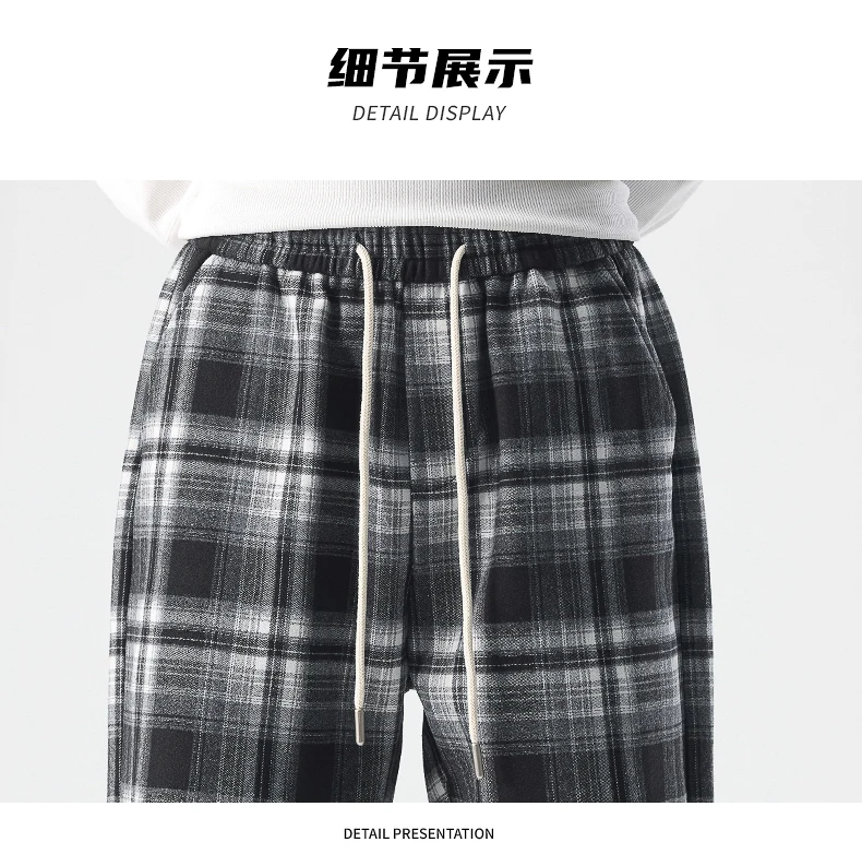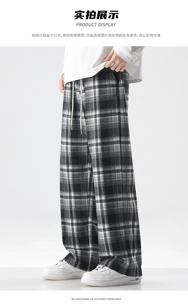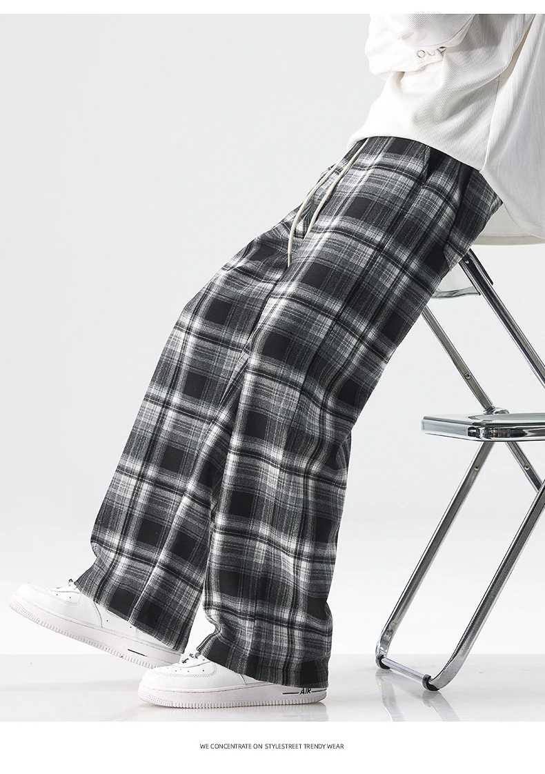 Fashion Man Casual Plaid Pants Streetwear Male Koreon Spring Summer Elastic Waist Loose Straight Sport Vintage Trousers