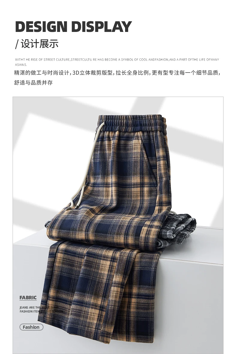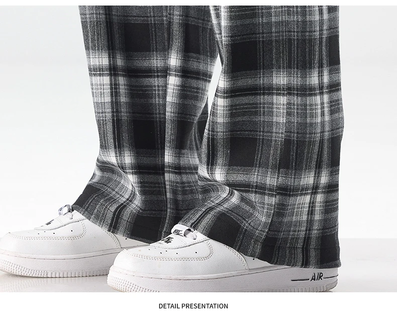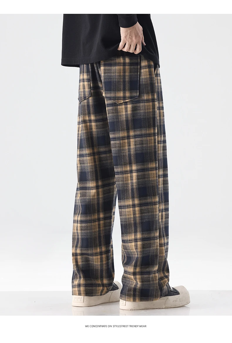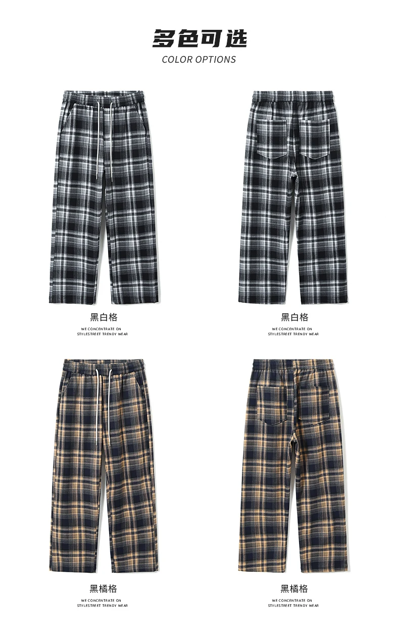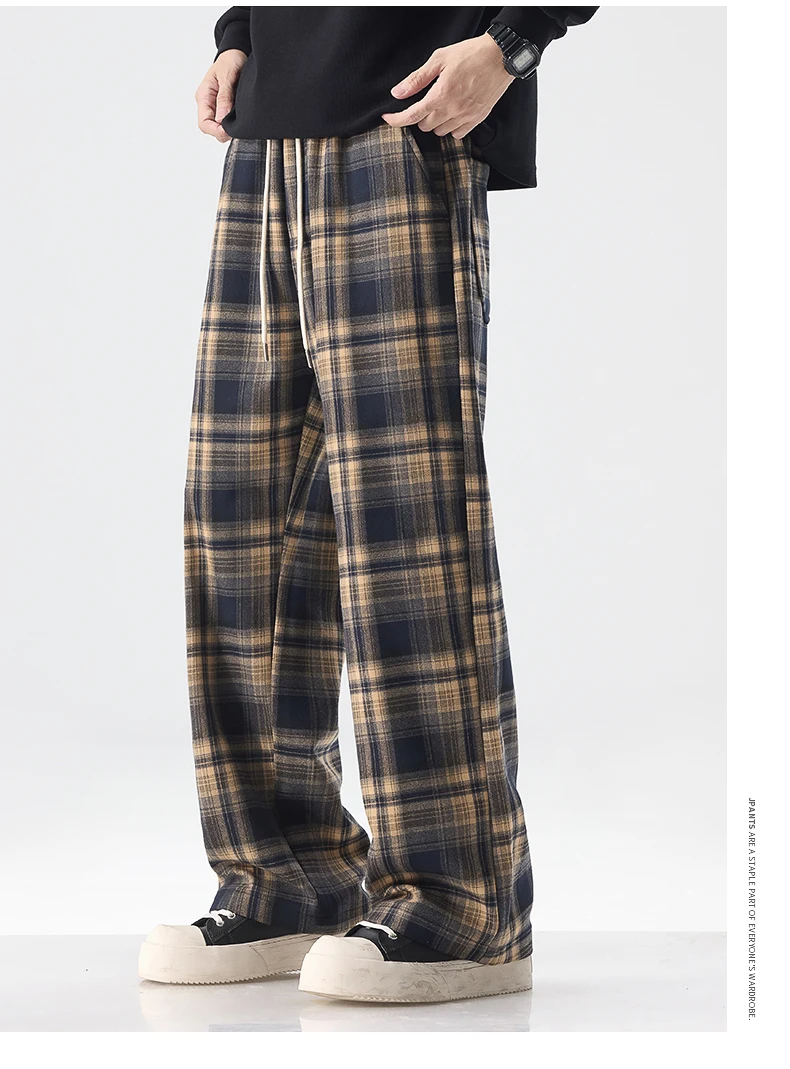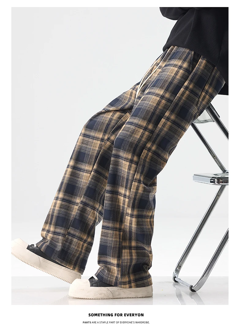 Fashion Man Casual Plaid Pants Streetwear Male Koreon Spring Summer Elastic Waist Loose Straight Sport Vintage Trousers