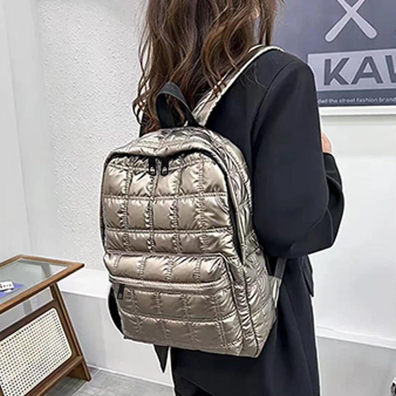 Fashion Multi-color Quilted Metallic Backpack for Travel Daily Outings Multi-pocket Multi-functional Practical Portable Bag