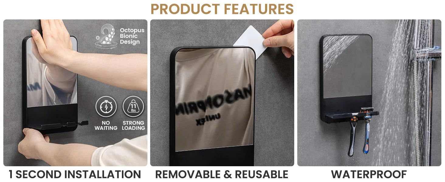 Transform your grooming routine with our Fogless Shower Shaving Mirror with Storage Tray. Designed for convenience and ease, this mirror allows you to shave or apply makeup effortlessly while ensuring a clear view without the hassle of fog. Perfectly suited for your modern bathroom, this innovative accessory simplifies your daily rituals.