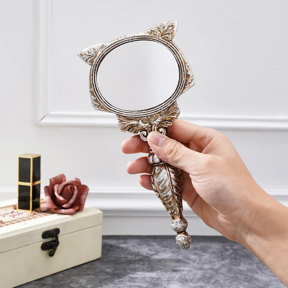 Enhance your beauty routine with the enchanting fox-shaped decorative makeup mirror. This whimsical piece combines functionality with stylish design, making it a delightful addition to your vanity or home decor.