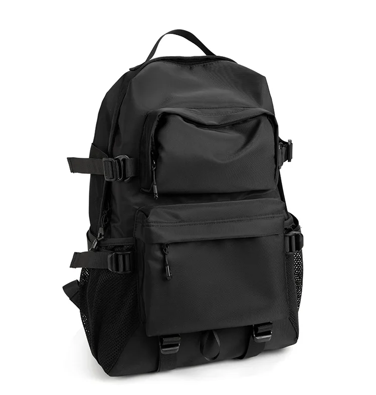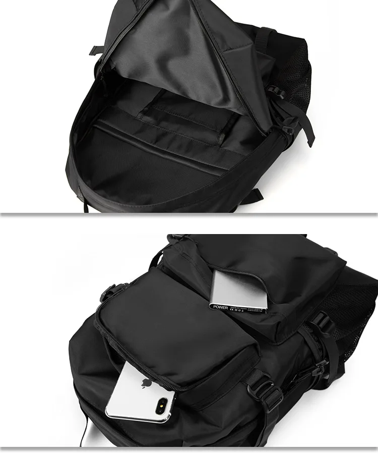 This is a functional large capacity men's backpack designed for travel and school, featuring various compartments and a sleek design.