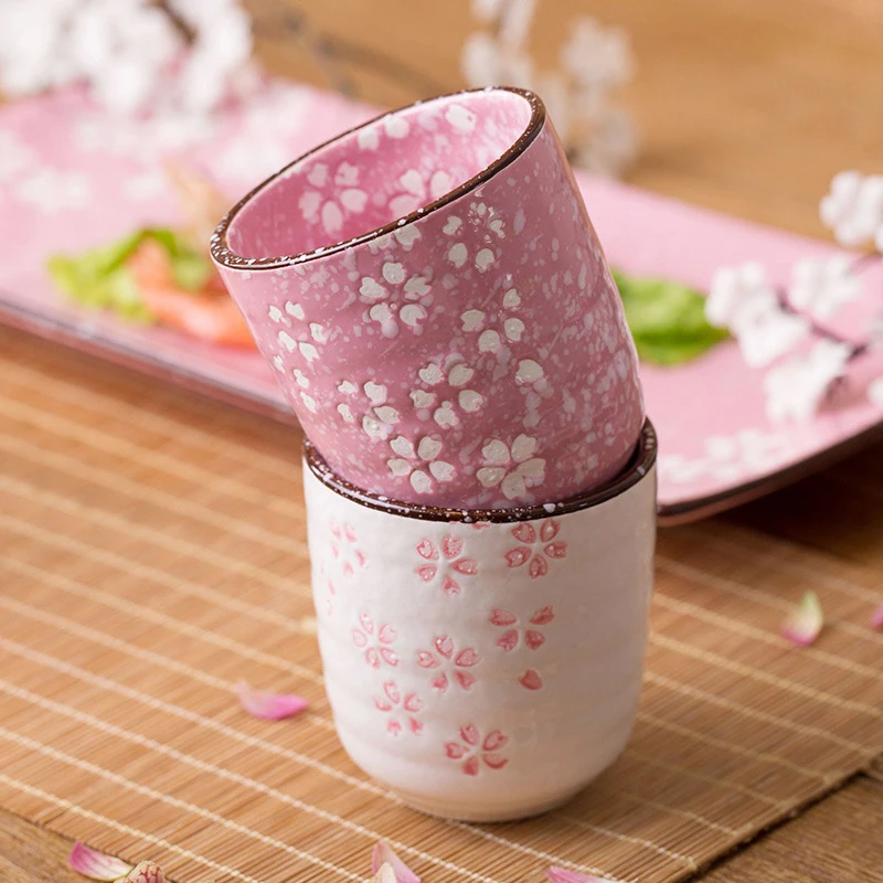 Home Owner Sub-Cup Glass Tea Cup Pink White Japanese-Style Kung Fu Tea Ceramic Underglaze Porcelain Tea Cup