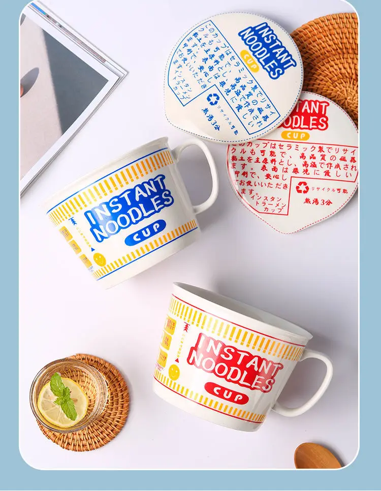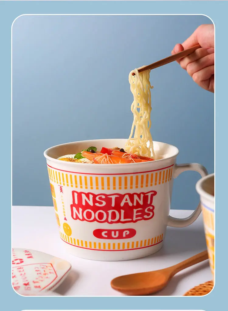 ins style creative instant noodle ceramic Cup bowl with cover bento box Student lunch box instant noodle Bowl soup Bowl set