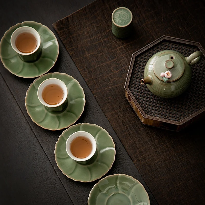 Japanese Ceramic Petal Coaster | Elegant Anti-Scald Teaware Accessory