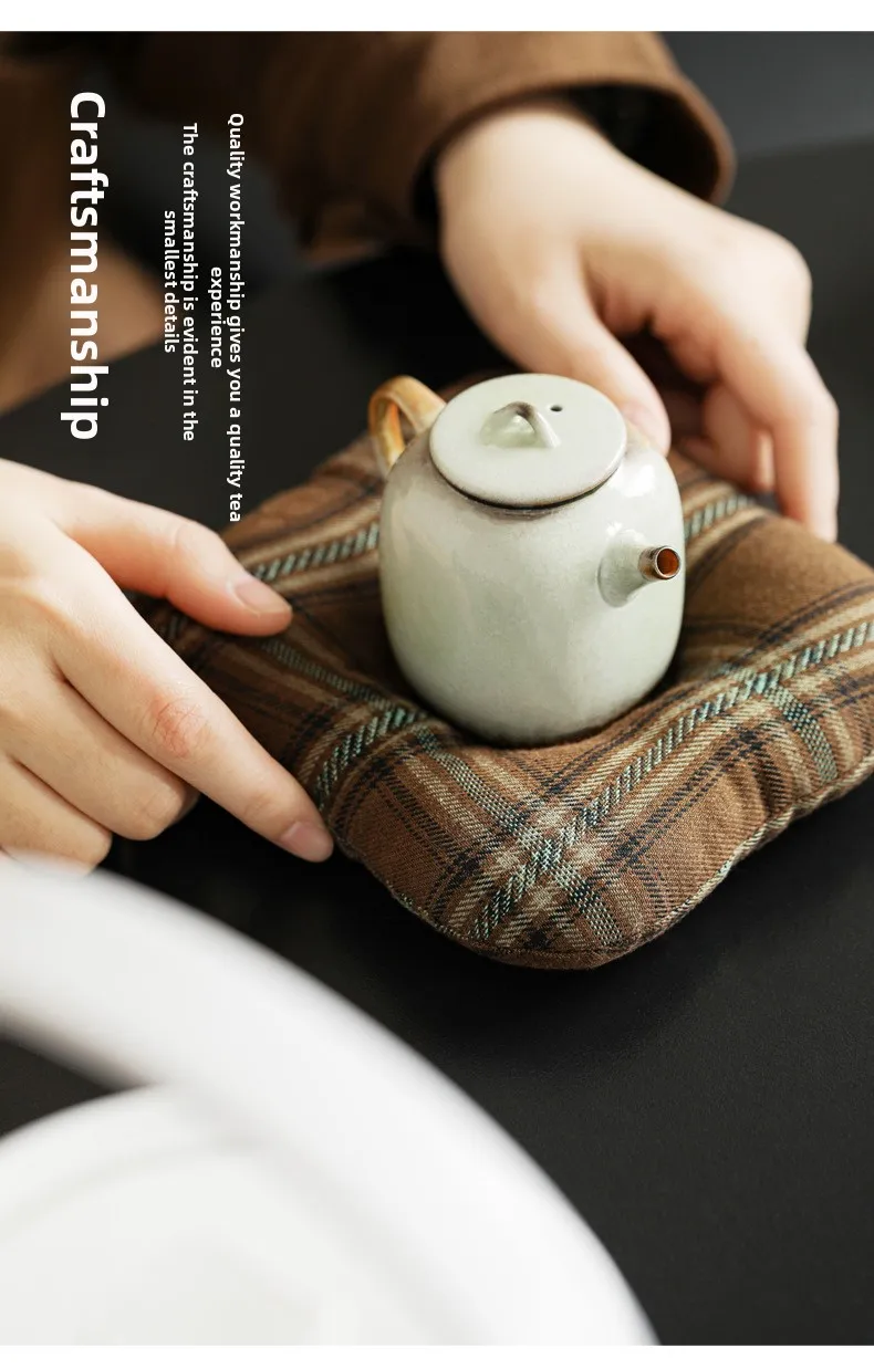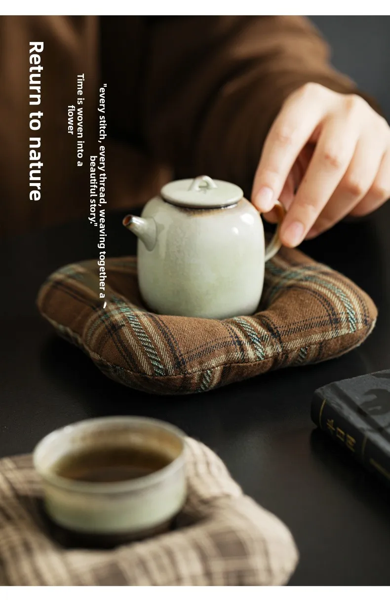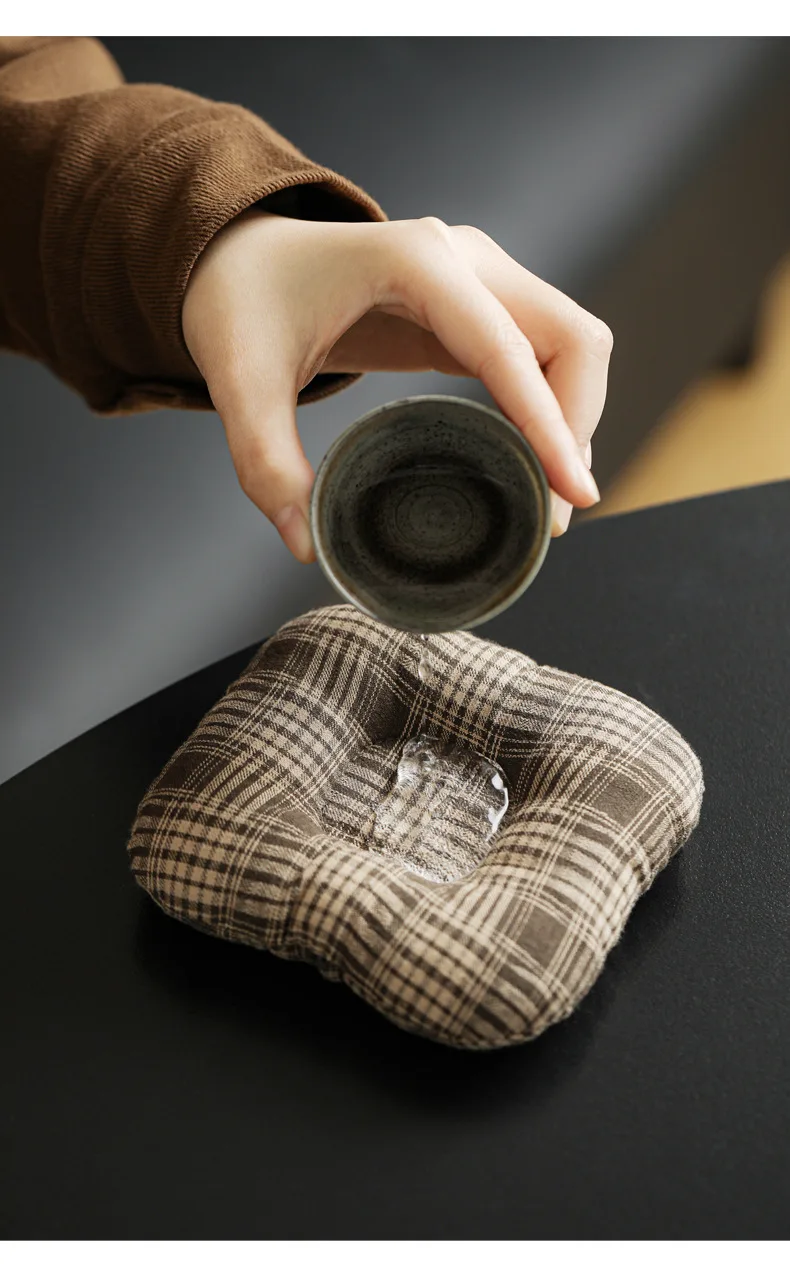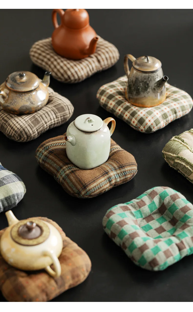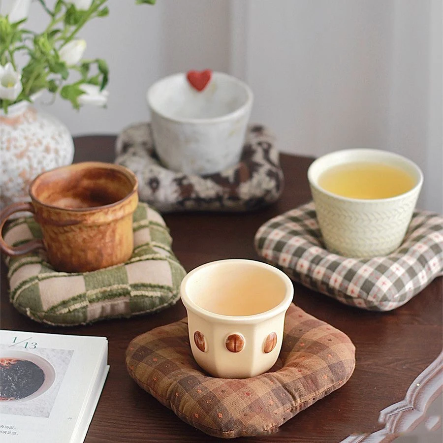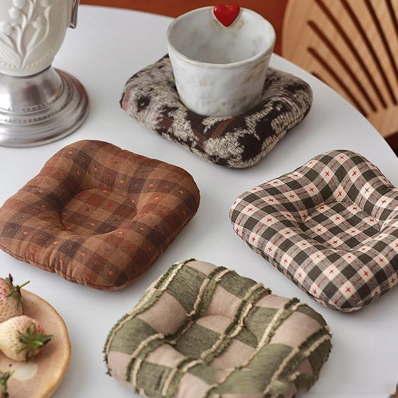 Japanese Fabric Coaster Retro Grid Square Cup Mat 100% Cotton with Filling Heatproof Durable Tea Coffee Cup Pad Placemats