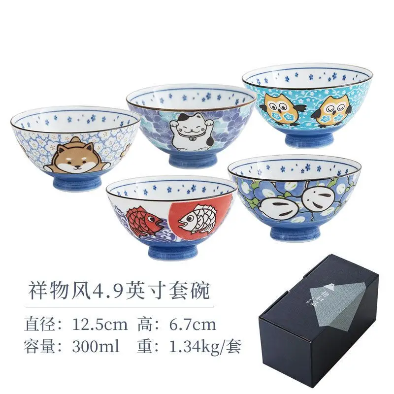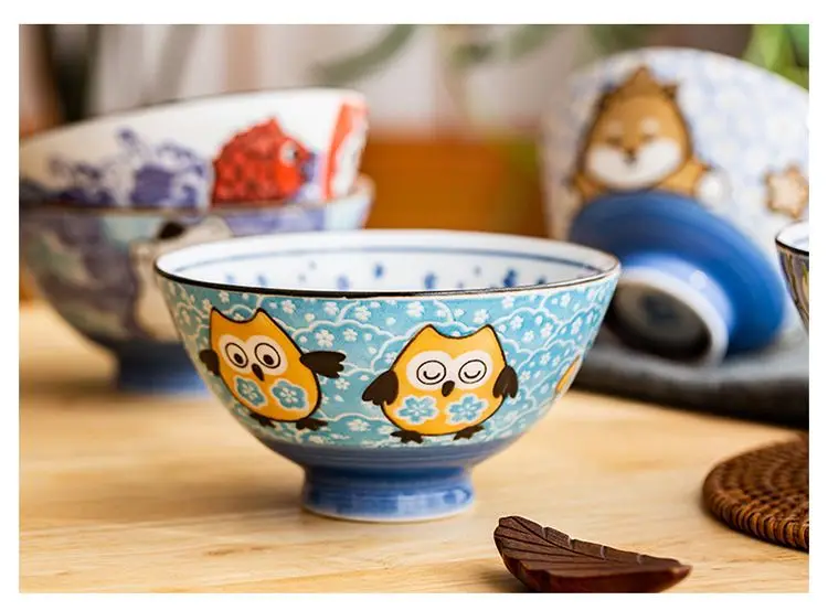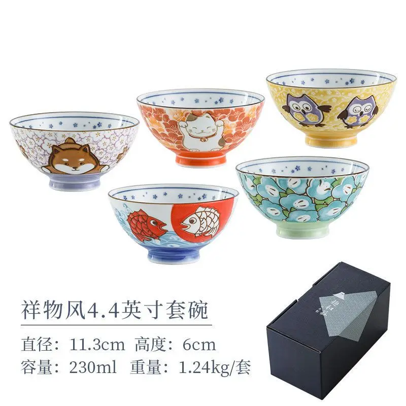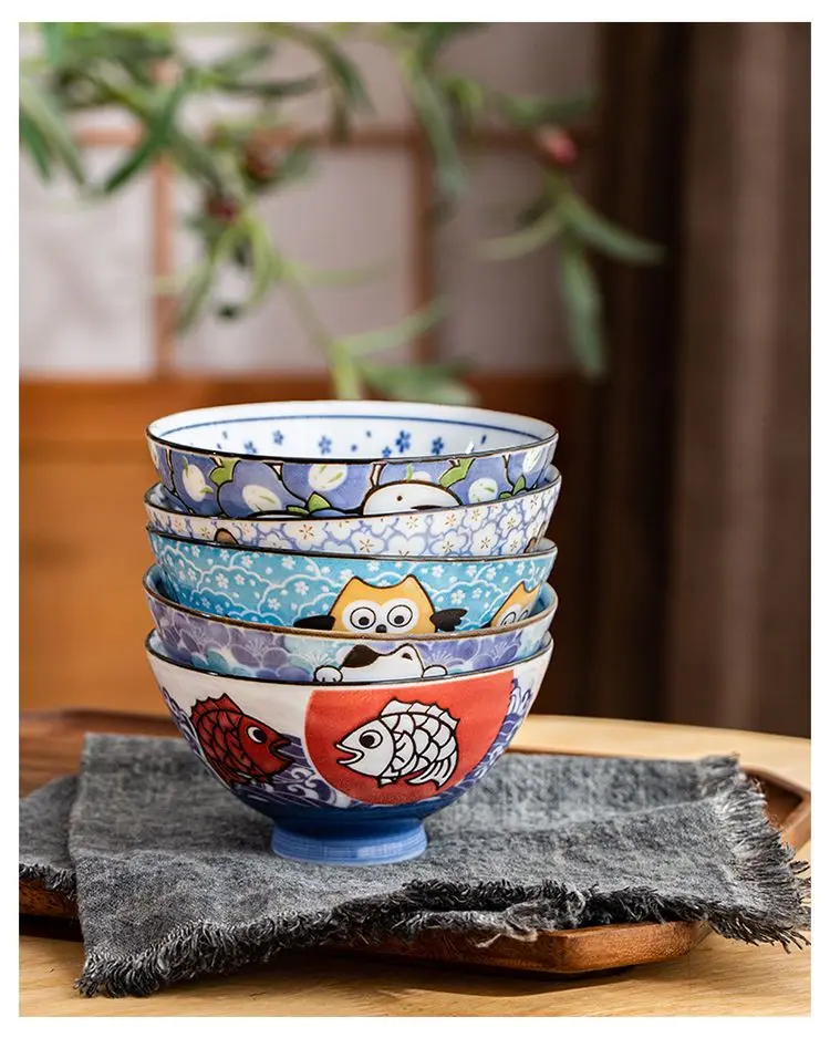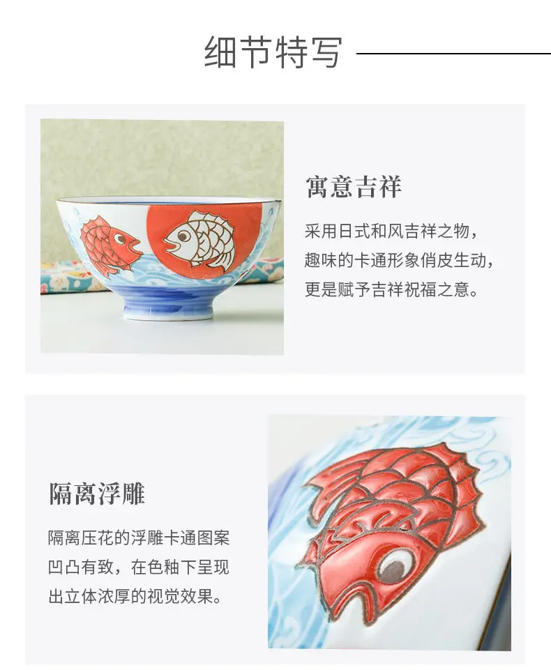 Japanese Imported Cartoon Ceramic Bowl Relief Tableware Household Children's Rice Bowls Cute Fortune Cat Small Ramen Bowl Gift