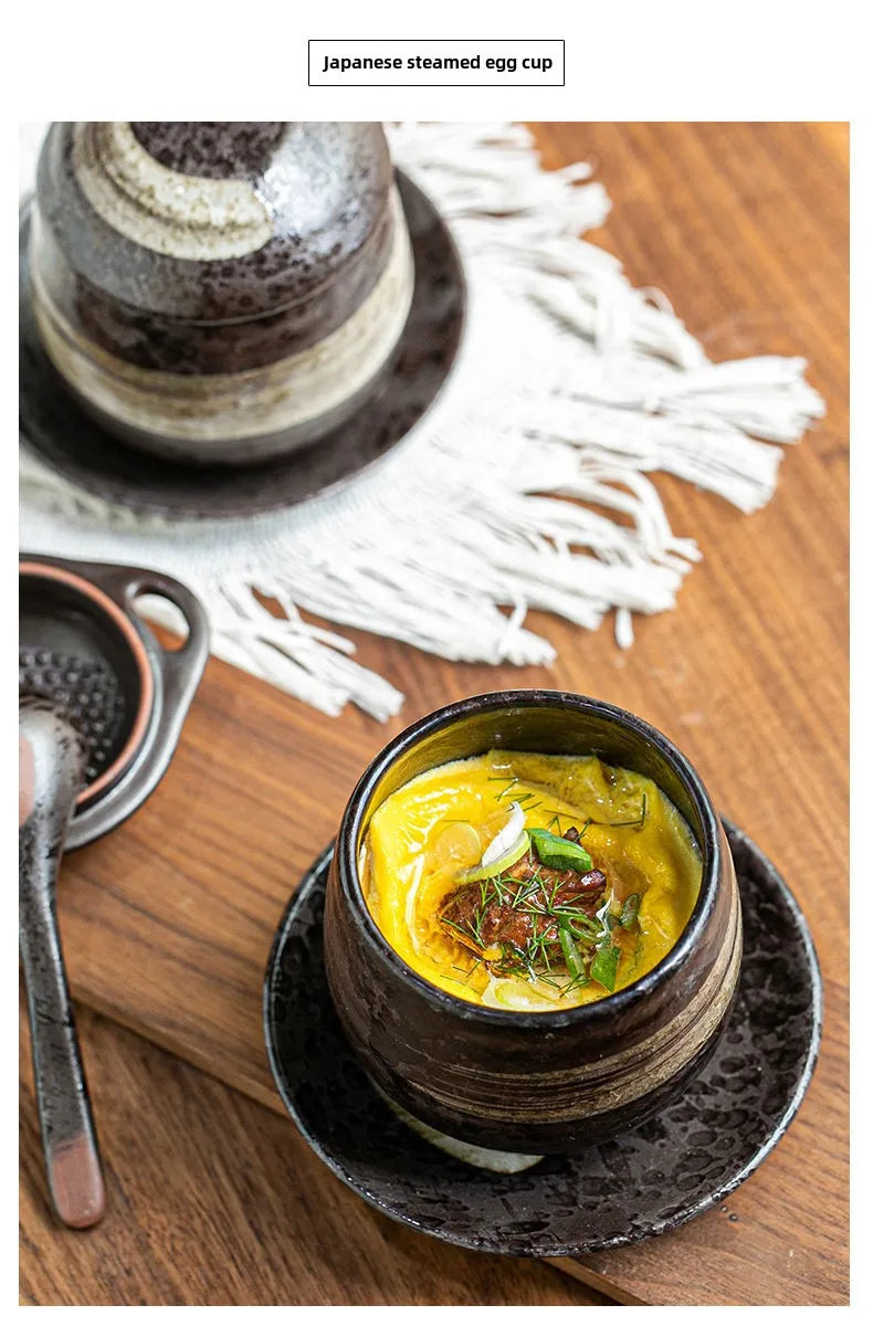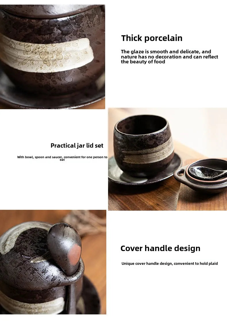 Japanese Retro Ceramic Stew Pot with Lid & Spoon Set | Multifunctional Soup Cup