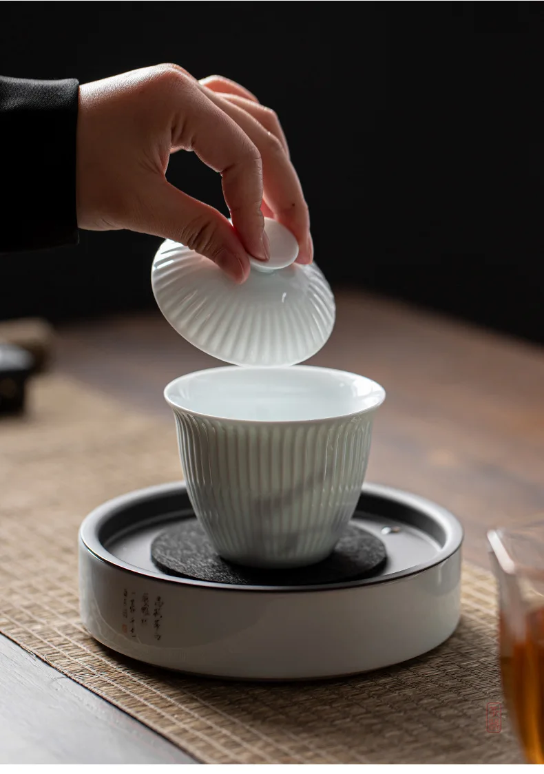 Japanese Style Handmade Ceramic Gaiwan Teacup Covered Bowl Household Tea Cup Brewing Covered Bowl Kung Fu Tea Set Accessories